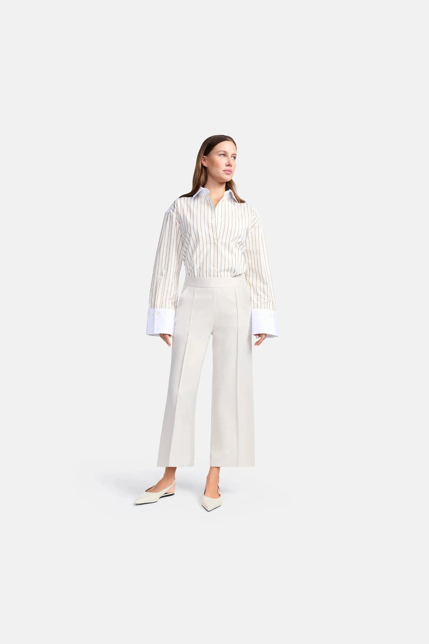 CAMERON culotte pants in a shortened length. Thanks to the power stretch content, the pants comply with the easy care principle: non-iron, crease-resistant, uncomplicated - the perfect 24/7 companion. The comfortable waistband also ensures comfort. Available in light blue, khaki, cream and off-white.