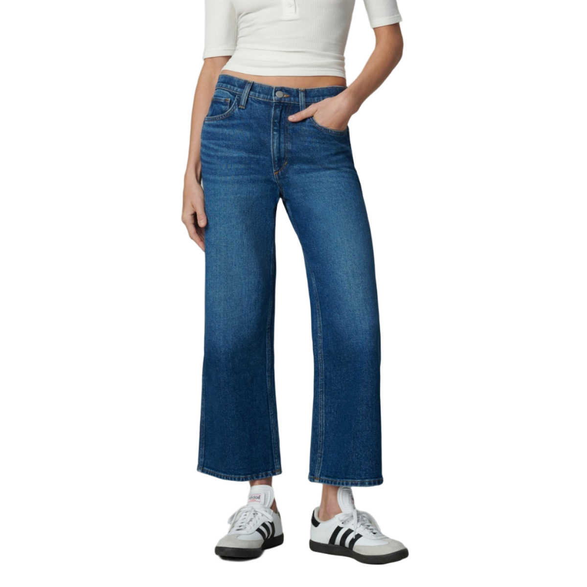 Slim fit through the waist and hips with a high rise and a minimal wide leg that hits above the ankle.