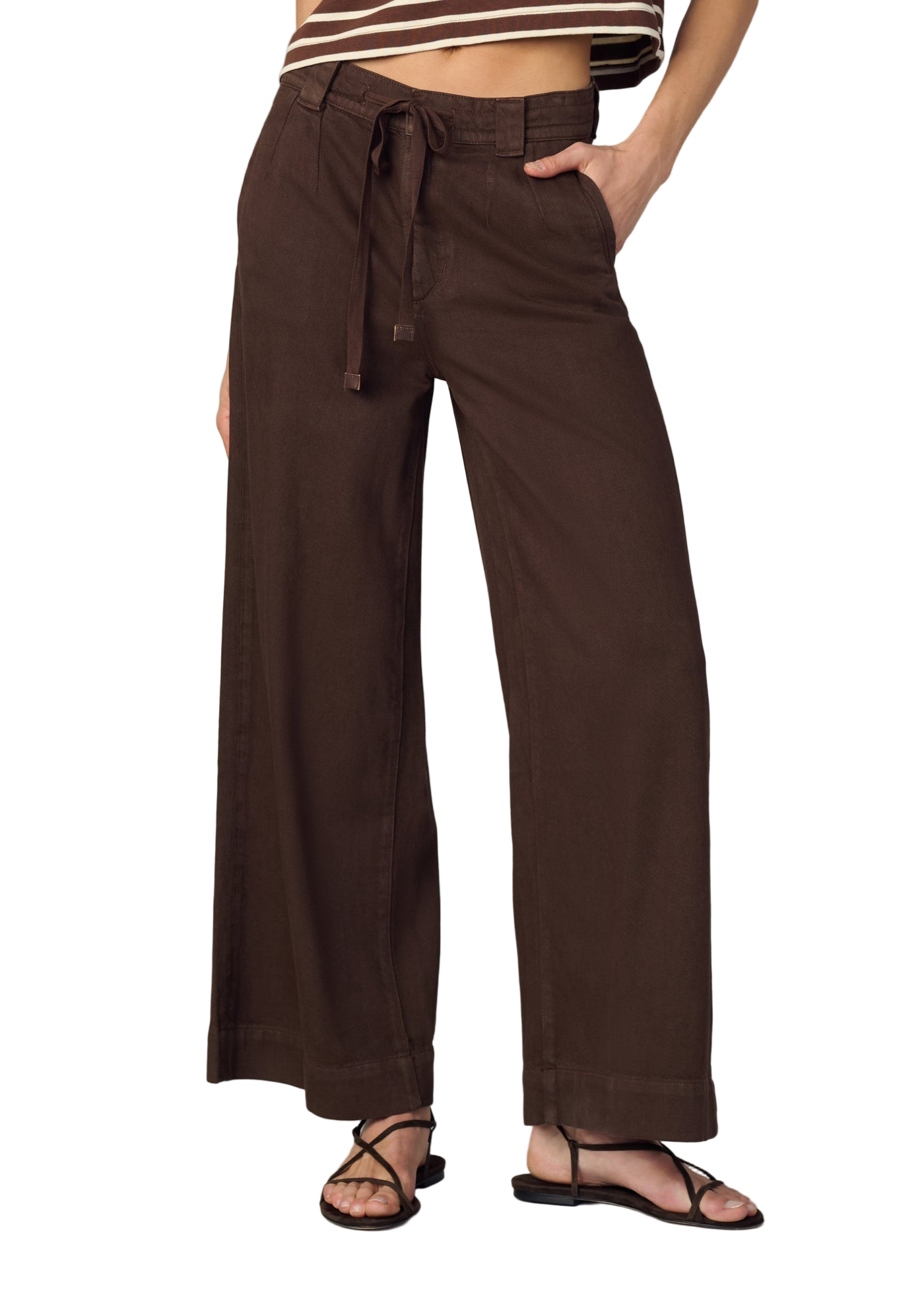 The pallazo cut is styled with a wide leg, drawcord waist and seam pockets. Rise: 11.75"Inseam: 27"