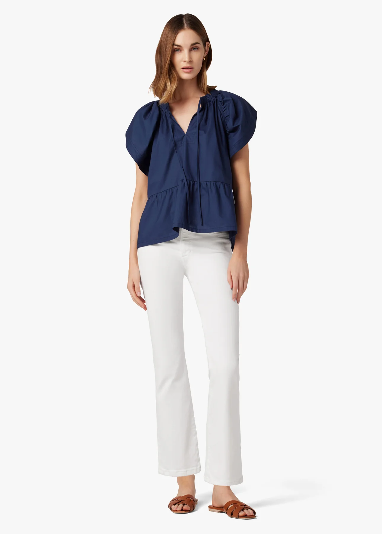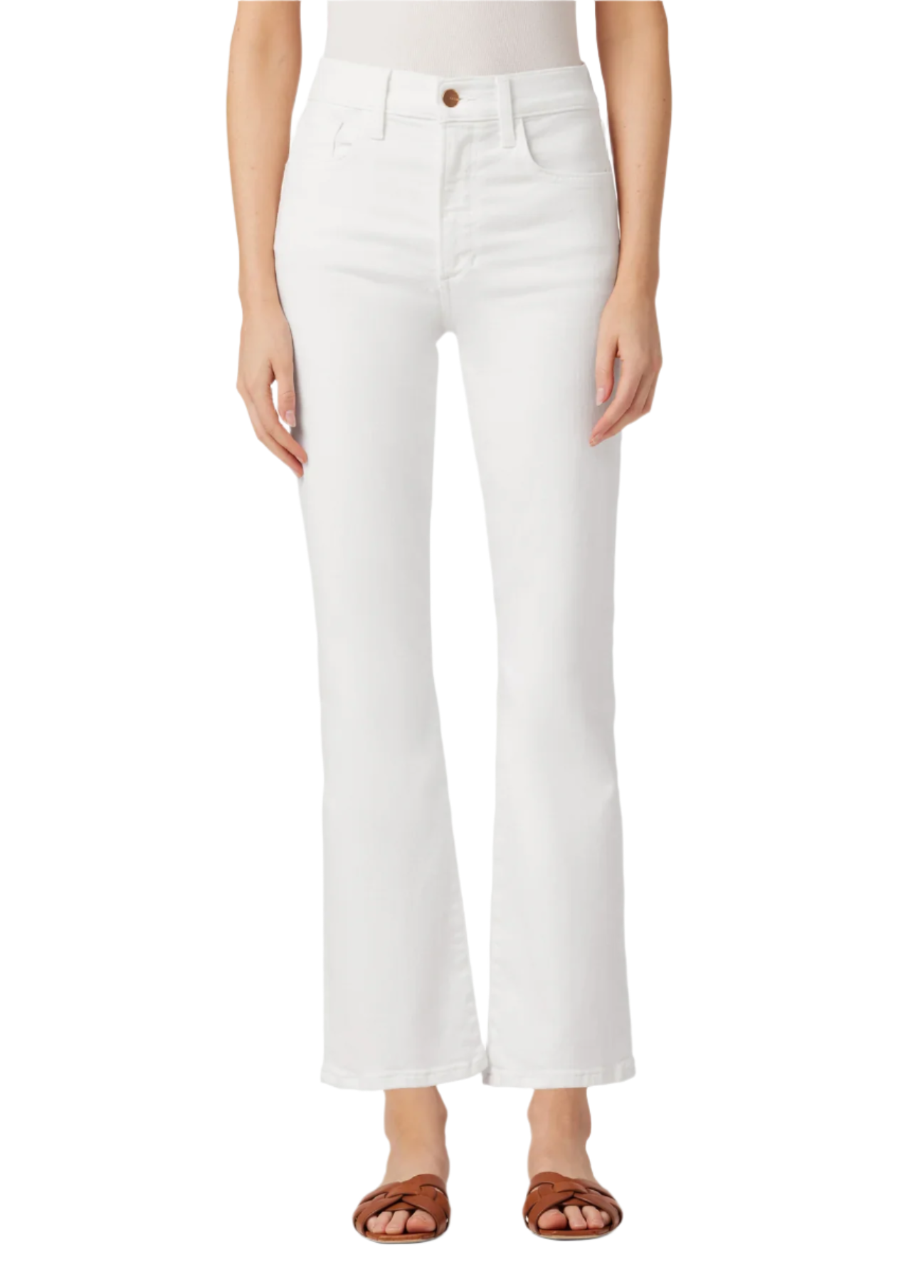 The Callie in 'White' is a high-rise cropped bootcut jean with the comfort and ease of stretch. The optic white wash and cropped length make the Callie the perfect warm weather companion.