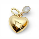 Gold Puffy Heart Charm with Semi-Precious Stone Charm | Small Size