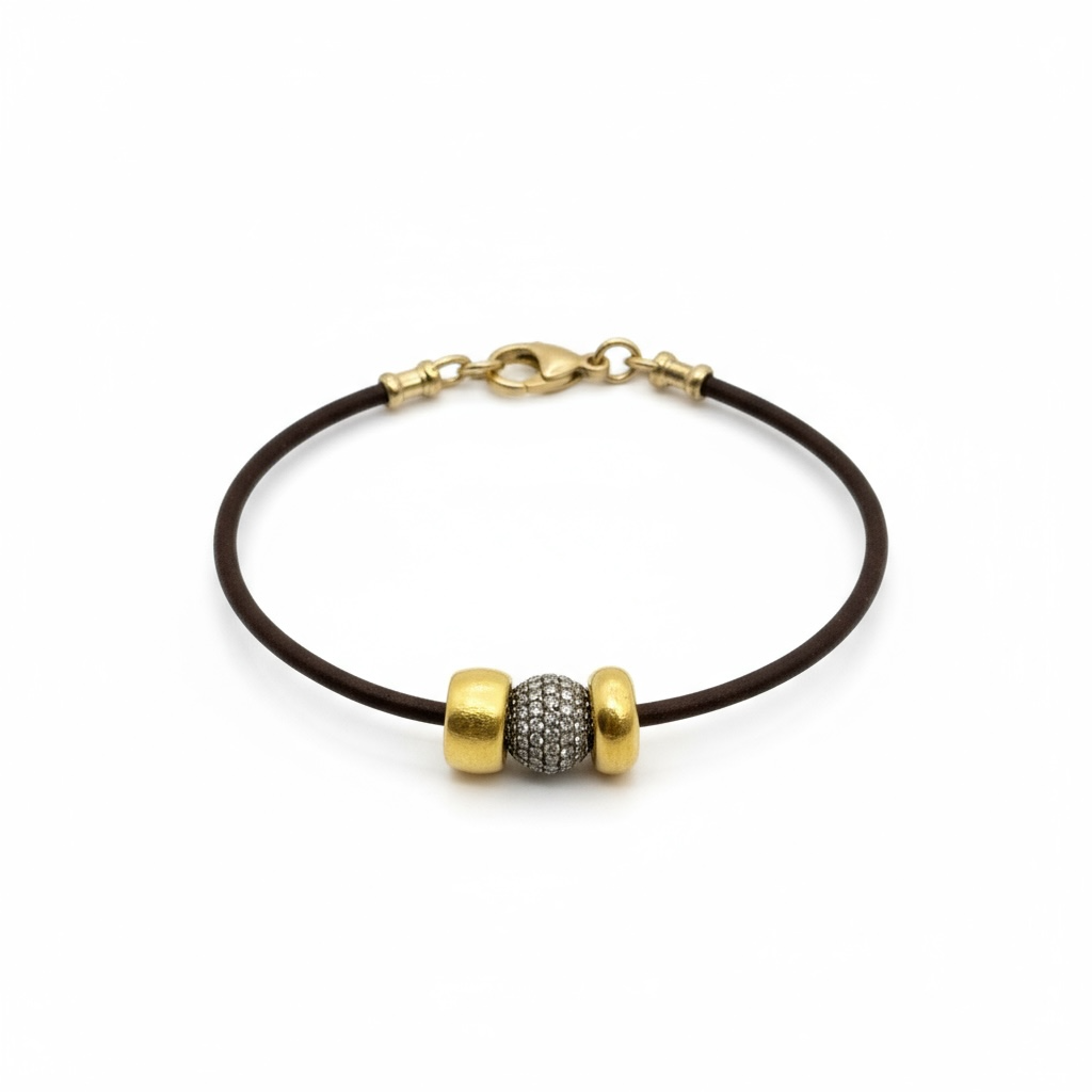 Pave Diamond Ball and Gold Roundels Bracelet