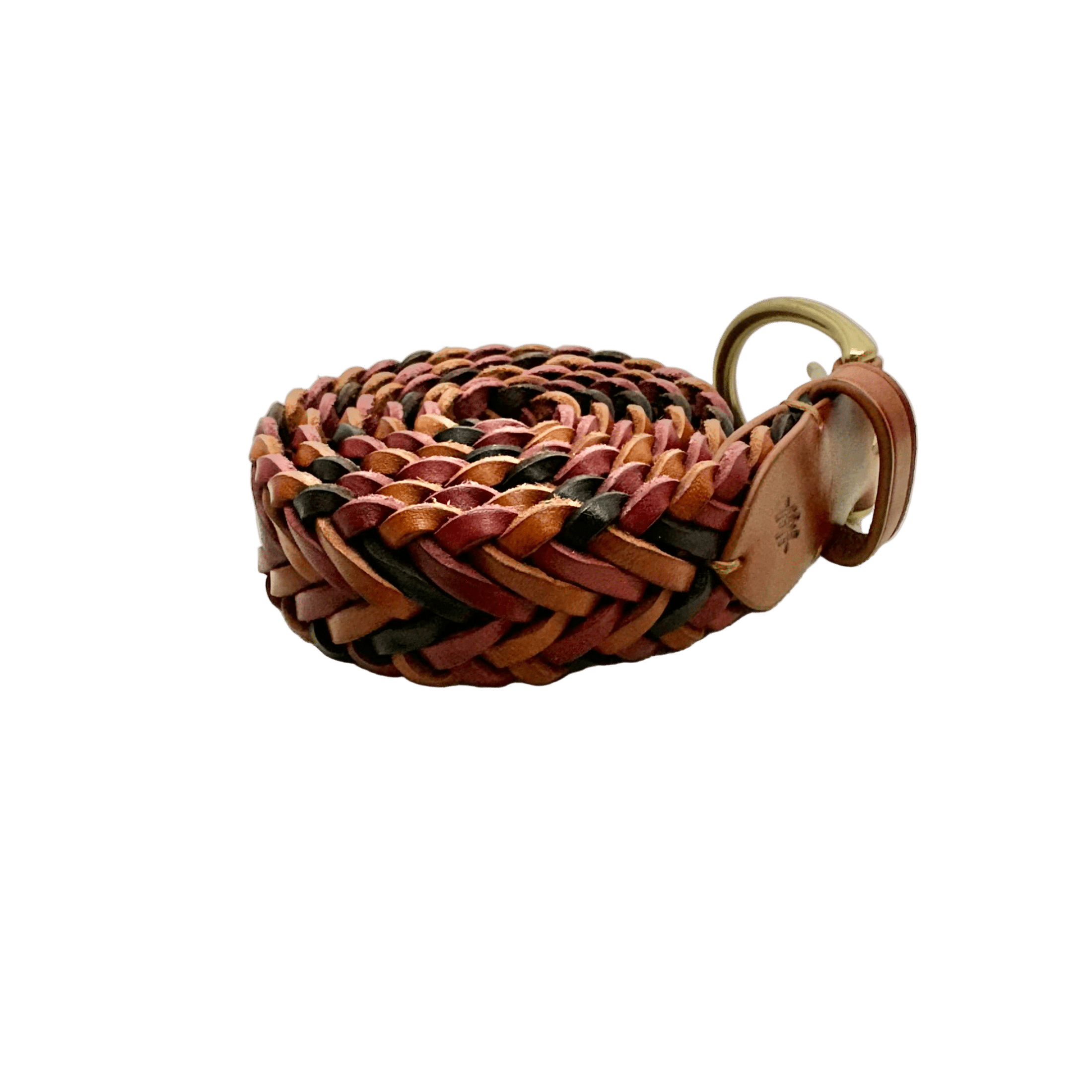 Braided tan, bordo, and dark brown leather belt
