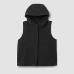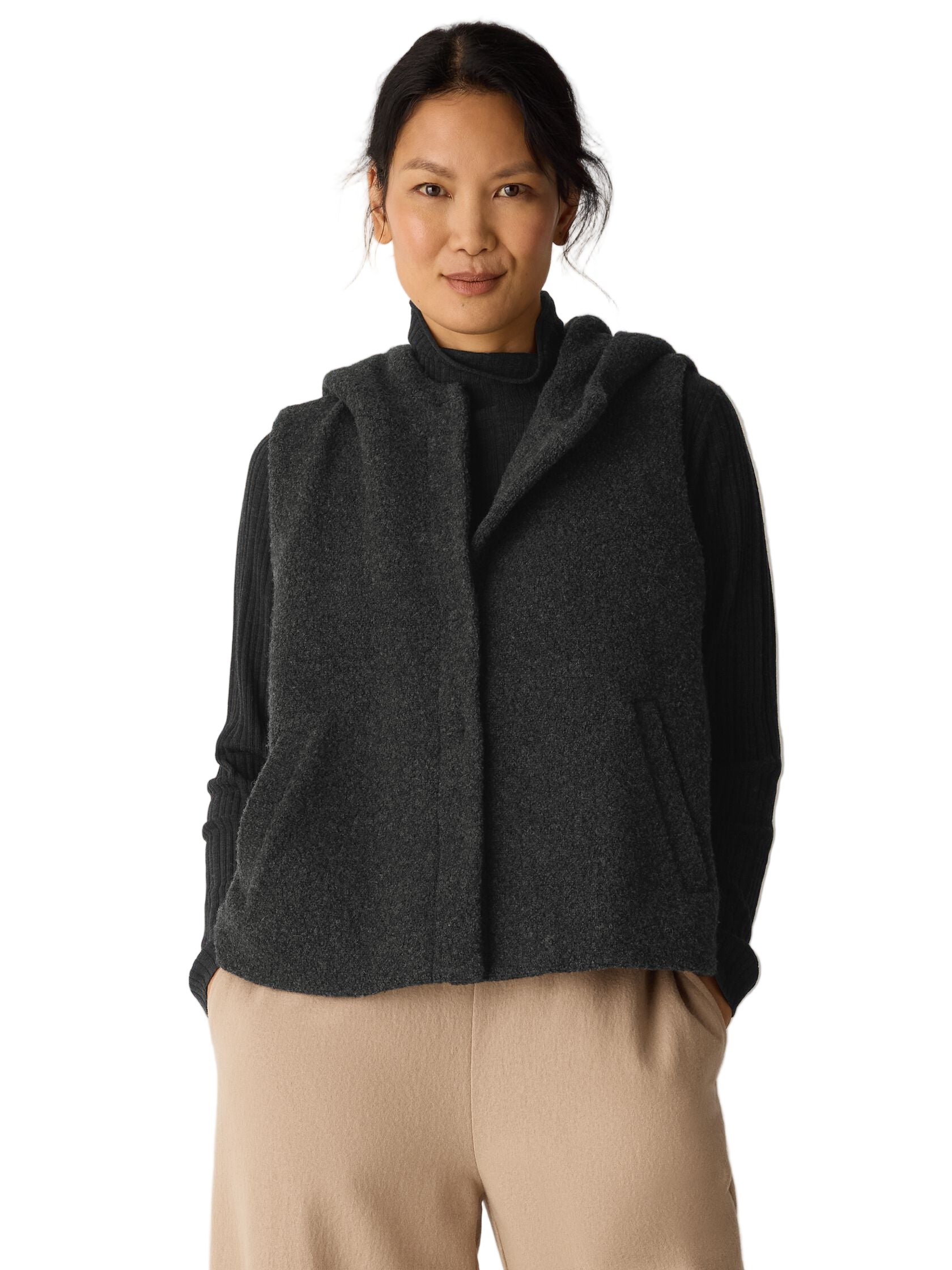 The go-to layering piece you'll reach for all season. A cozy hooded vest with snap buttons and pockets. In a soft boucle knit made from recycled wool. Made in a Fair Trade Certified™ factory.
