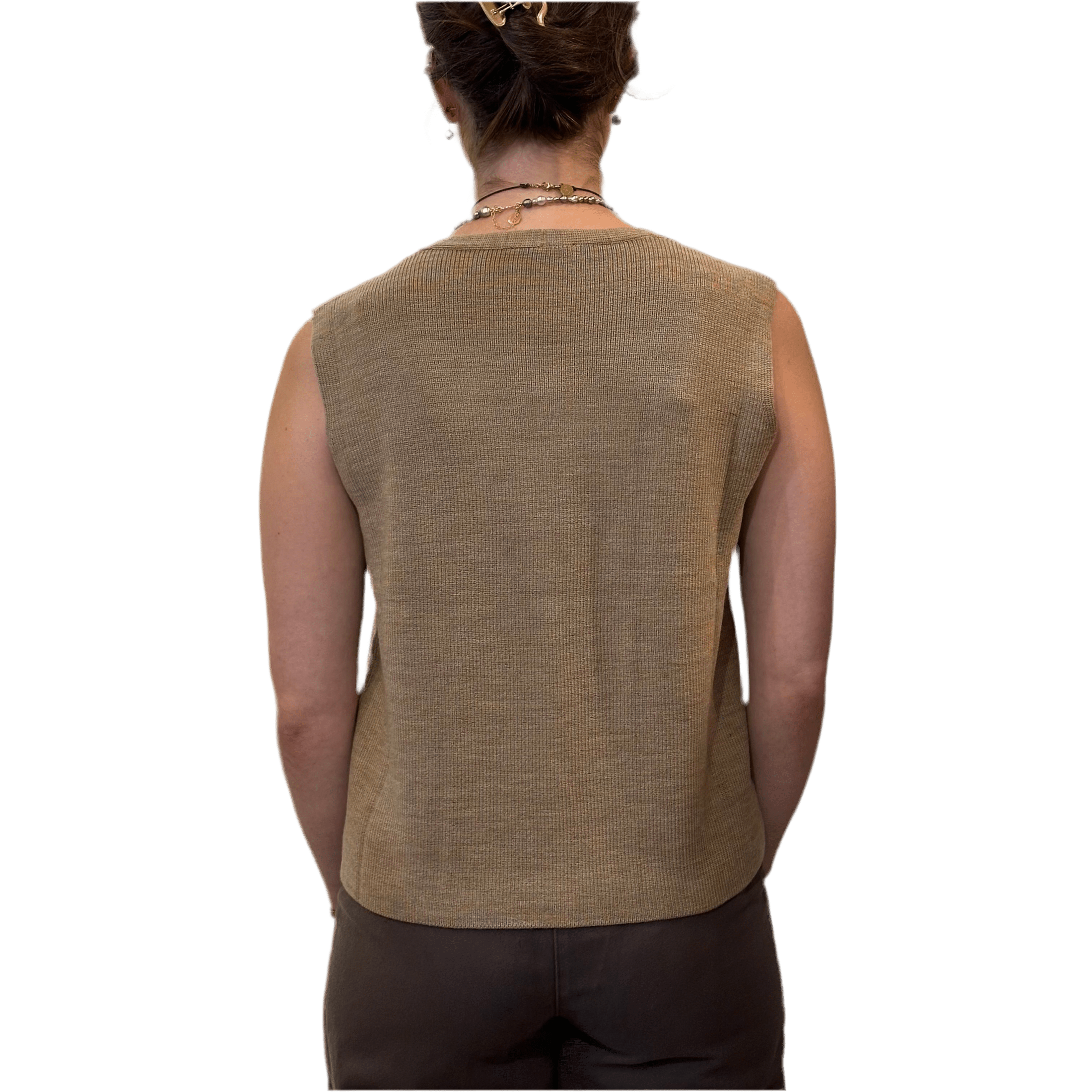A timeless shape set apart by refined texture. The V-neck vest with a button front, in soft merino made with regenerative fiber.