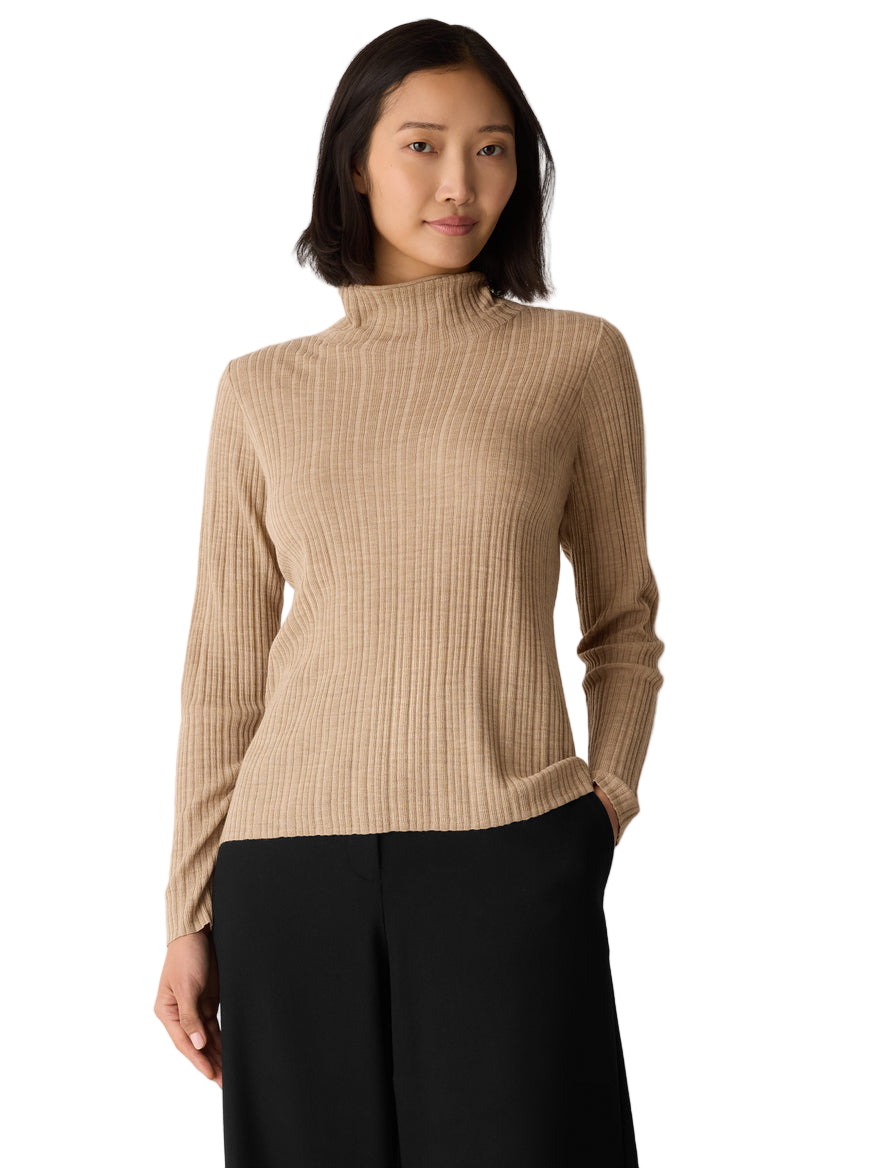 Soft to the touch. The classic turtleneck elevated by vertical rows of texture, in fine merino made with regenerative fiber.