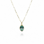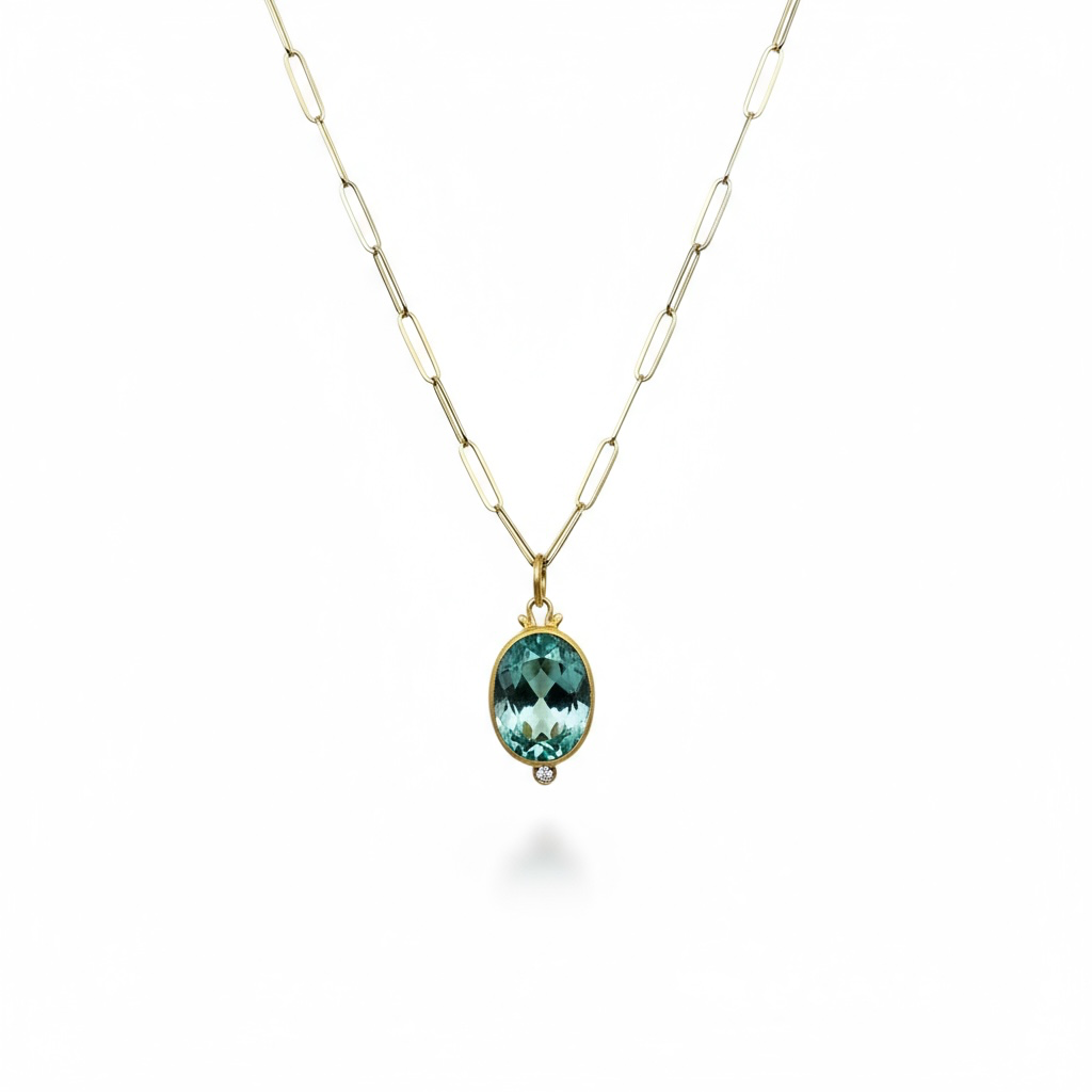 Faceted Aquamarine semi-precious stoned surrounded by 24K Gold with Diamond accent and gold loop.