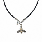 14K Gold and Sterling Silver Bee with Pave Diamonds w/ Gold Pave Diamond loop. This loop does not open.