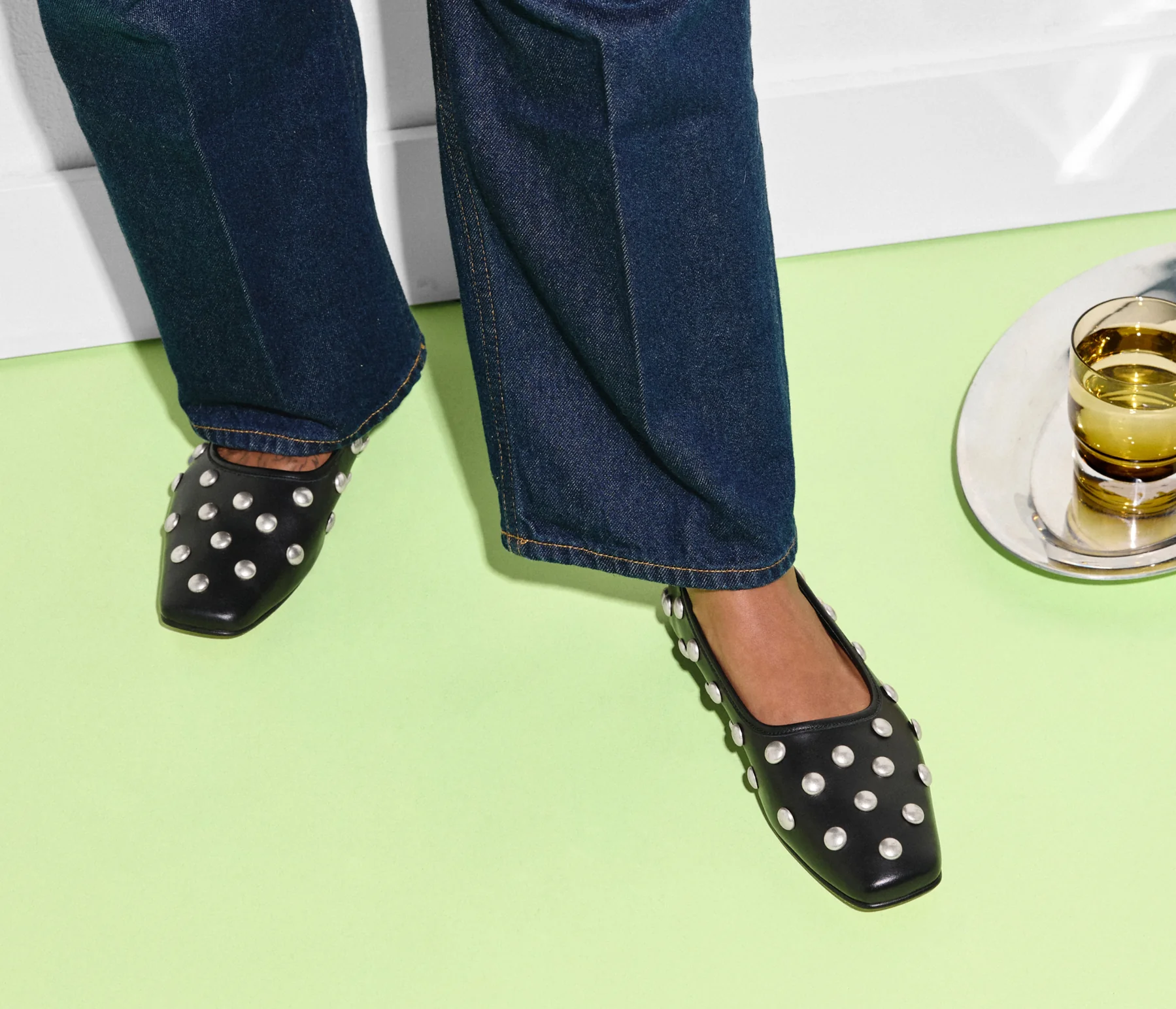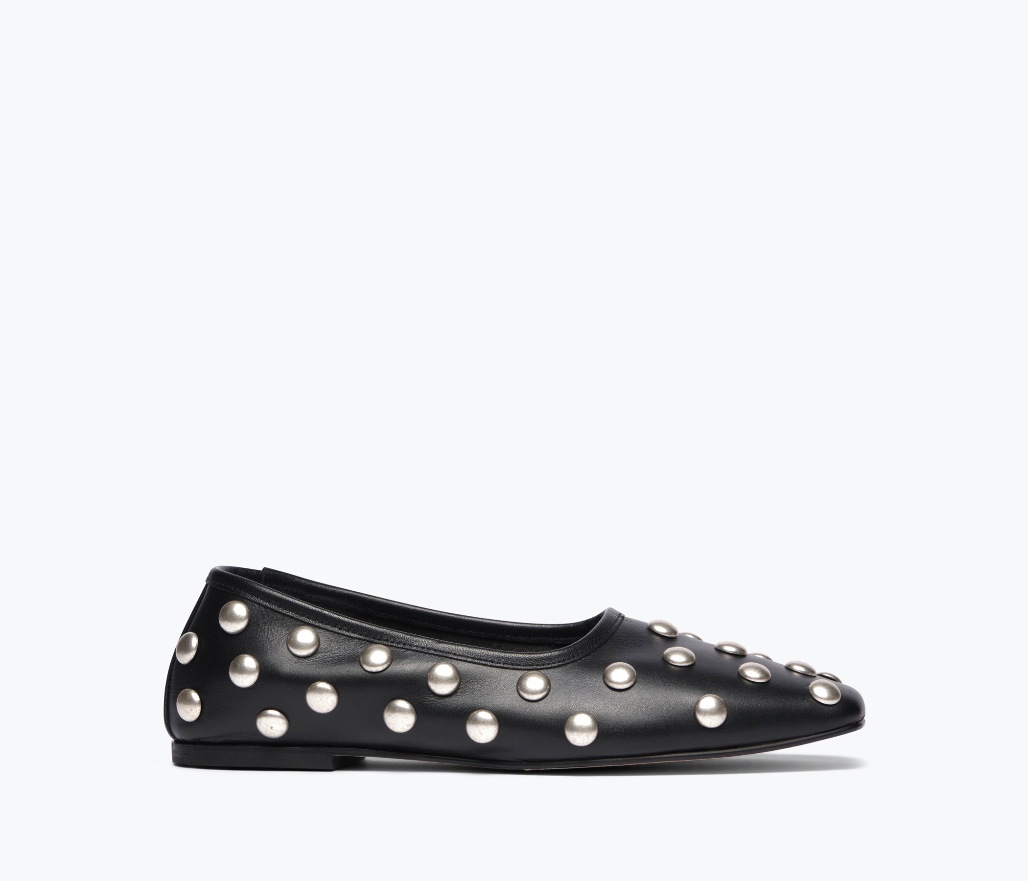 The studded ballet flat. Handcrafted with black calf, the JESSIE updates our iconic ballet with cool studs and a modern square toe. Equal parts versatile and statement, we’re living in this flat with everything from oversized oxfords and denim to maxi dresses with a quilted jacket.