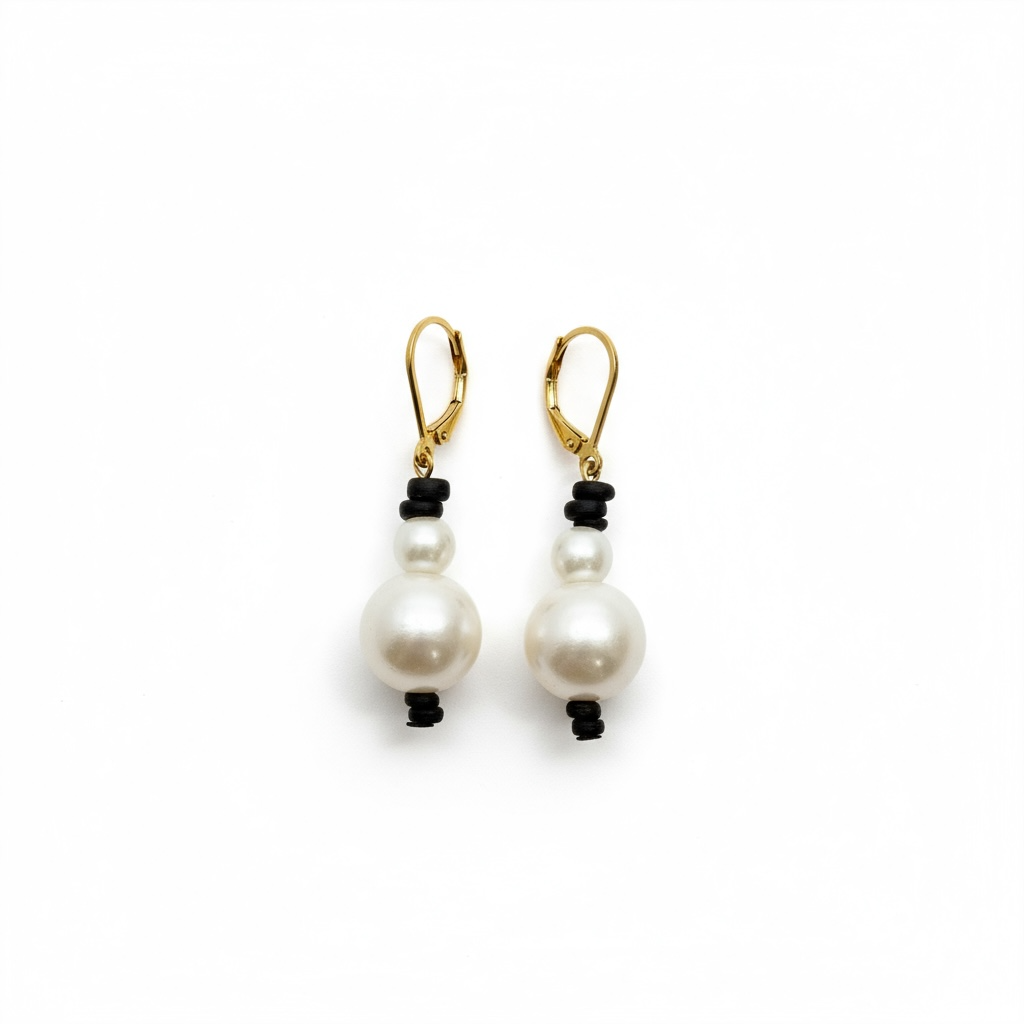 Round Pearl Stack on Leather Earrings