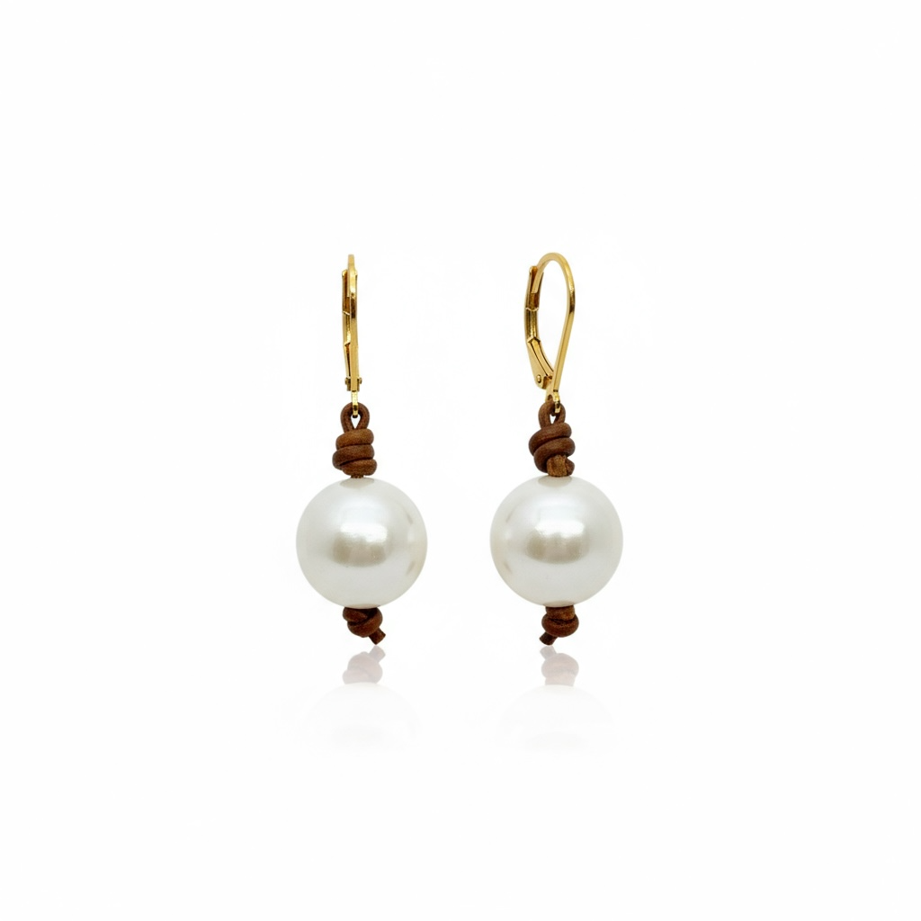 Round Edison Pearl on Leather Earrings