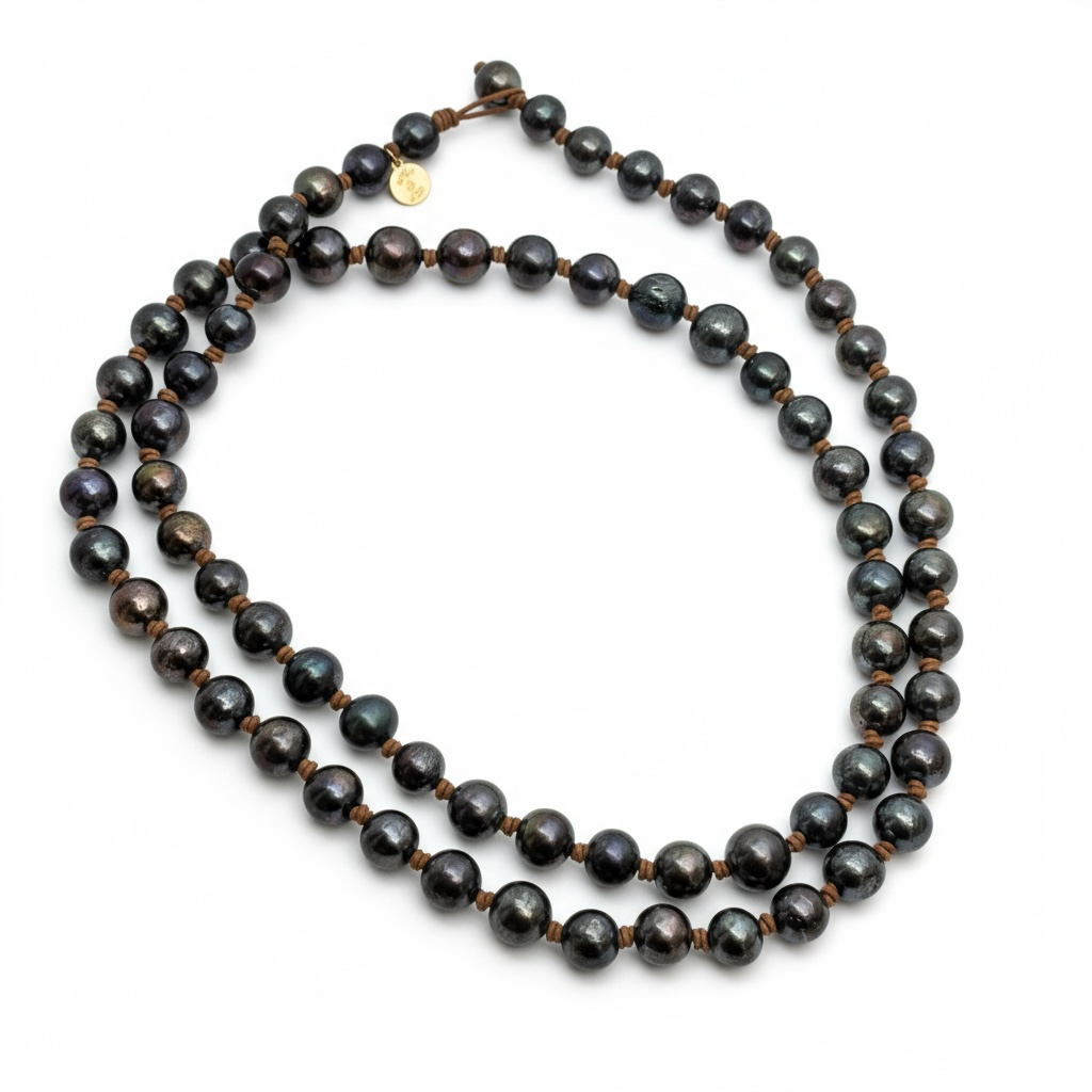 Your classic freshwater pearl gets a modern twist — hand-strung on soft leather for a look that’s timeless yet relaxed. Perfect for everyday elegance with a hint of edge.