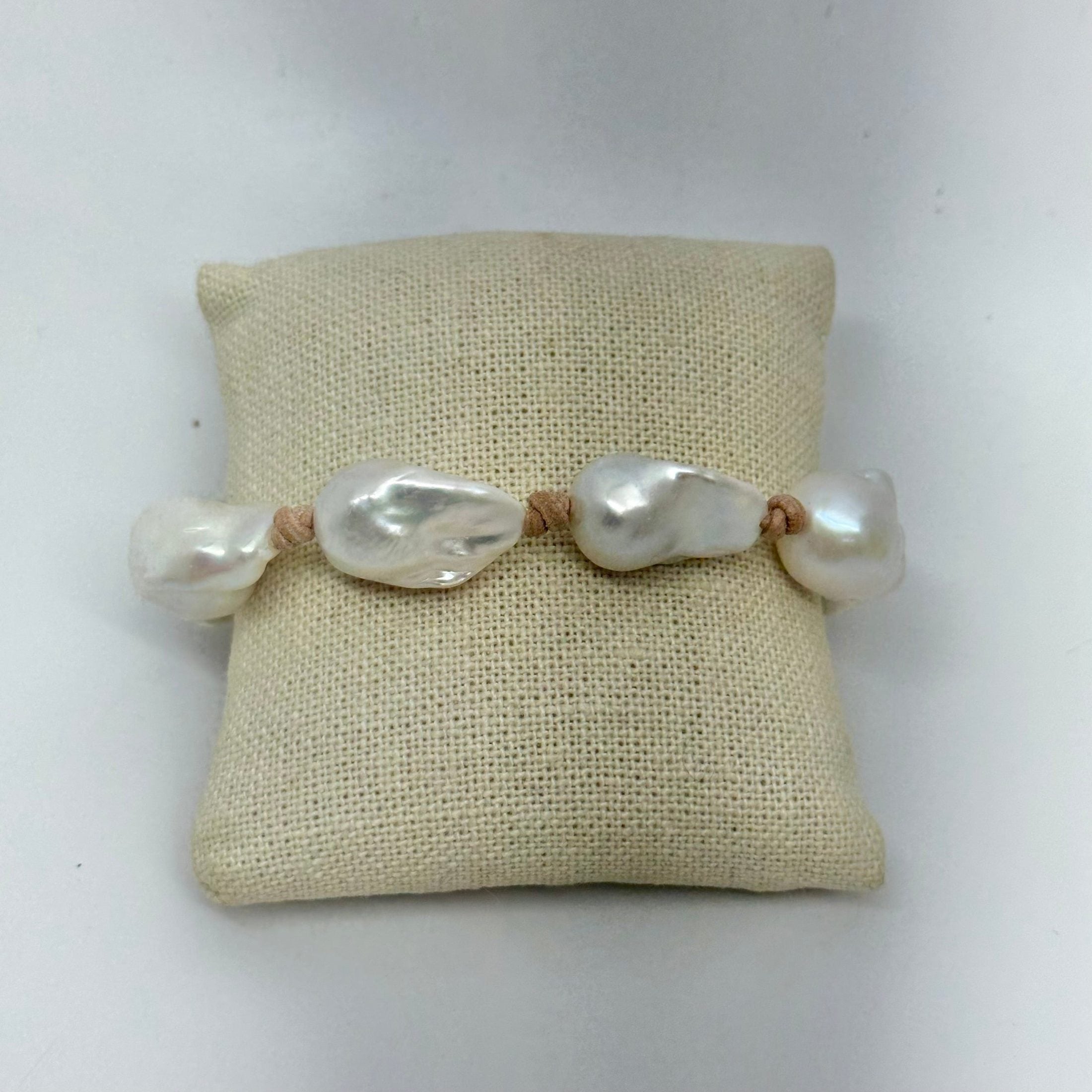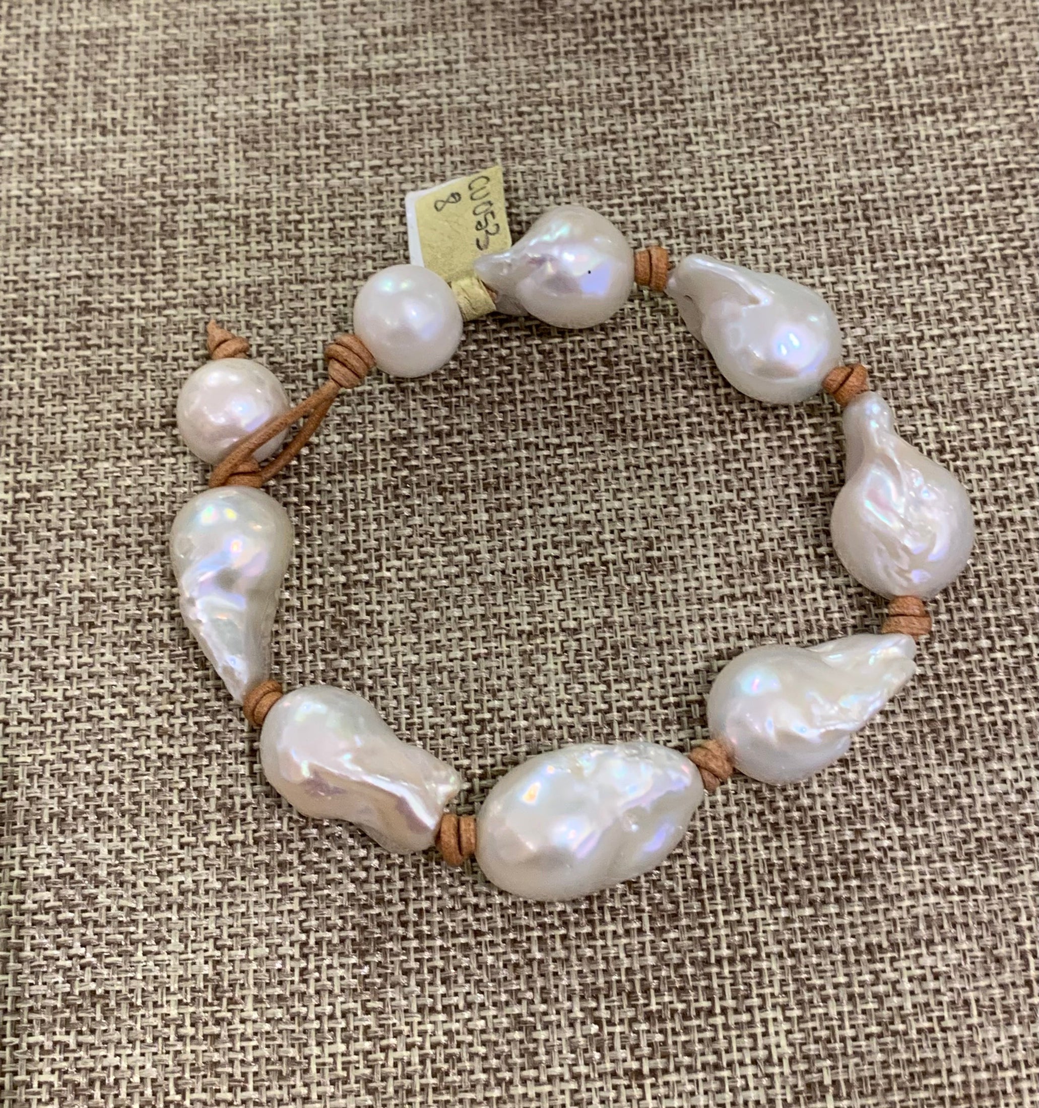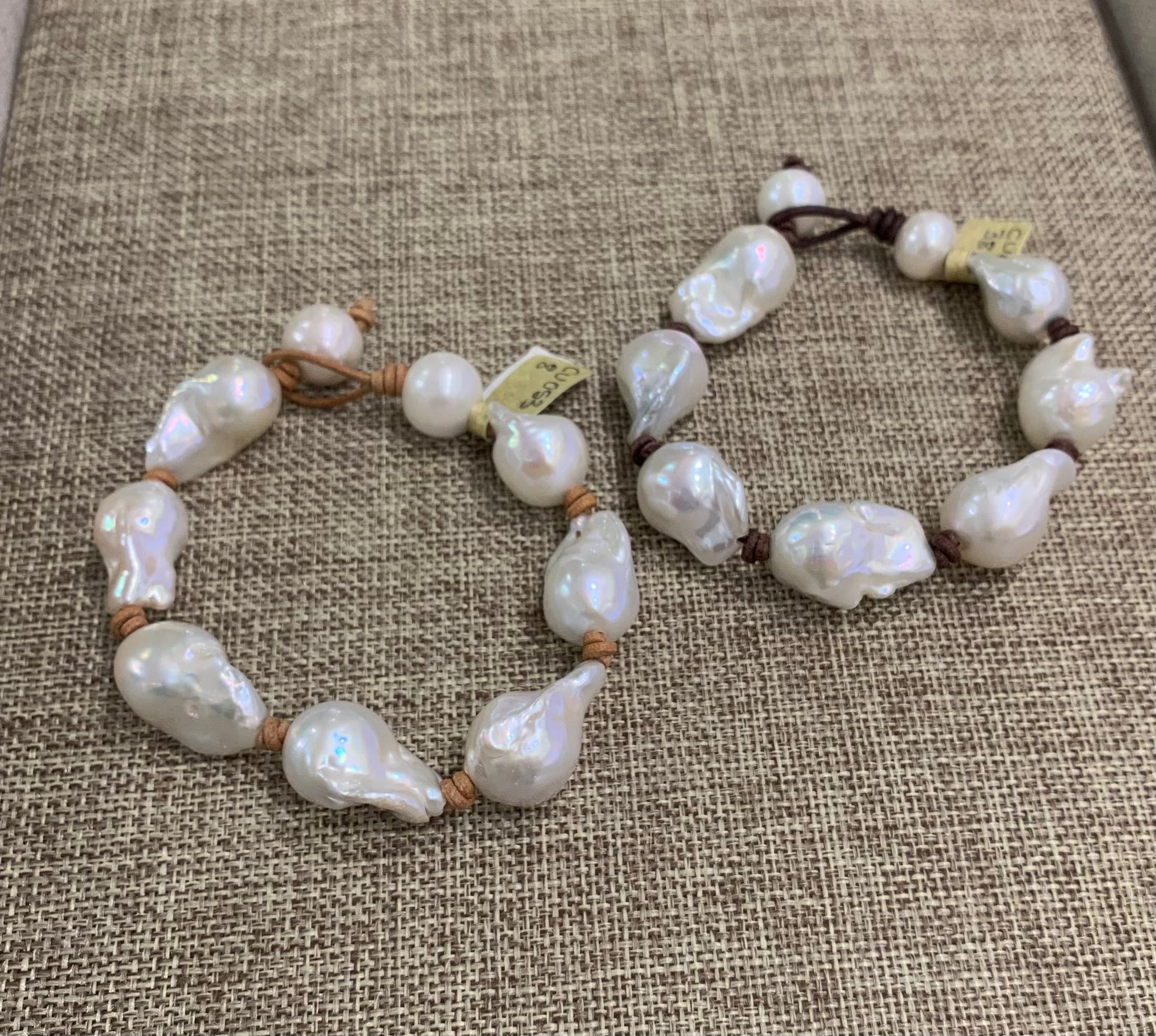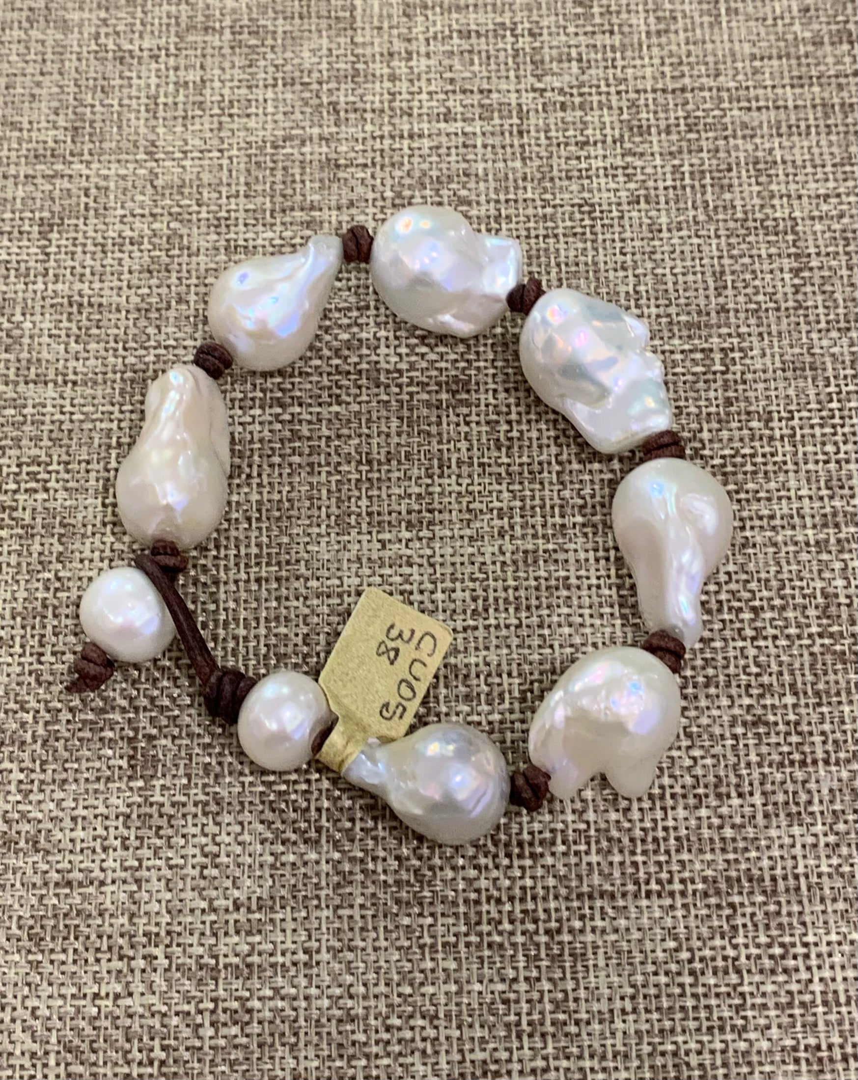 Beautiful small Baroque Freshwater Pearls on leather; Great piece to stack with your round pearls to add dimension to your look.