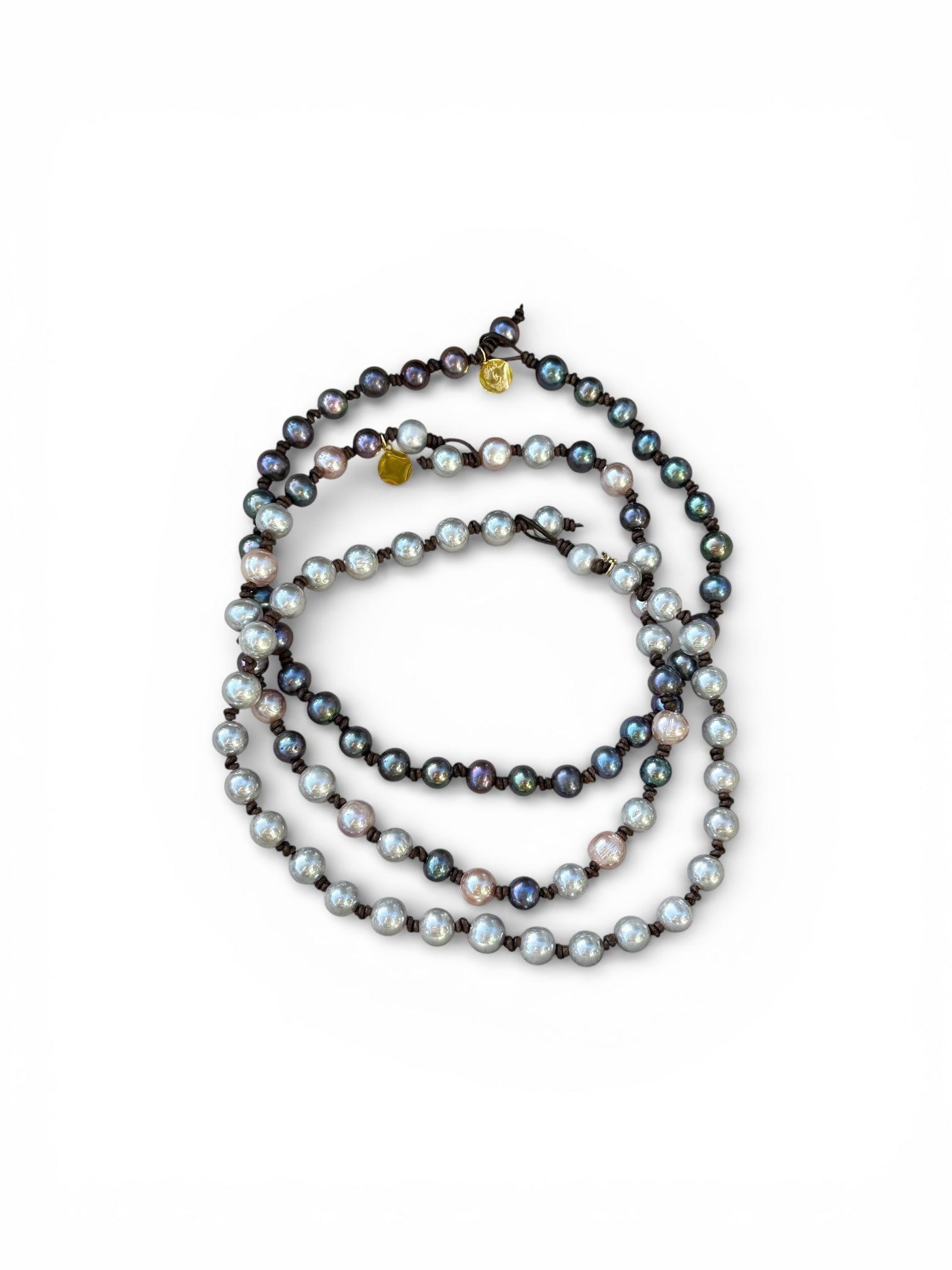 Petite Pearl Choker with Leather Knots | 4 Options | 16"