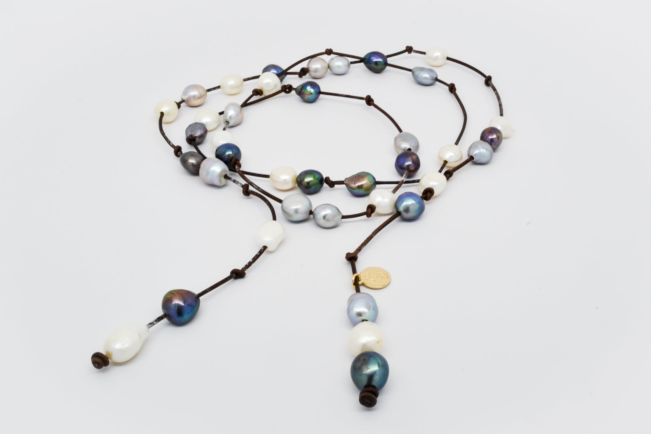 2" longer than our Classic Lariats ... tri- colored freshwater pearls. Approx. 55".