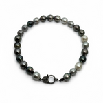 Tahitian pearls strung on dark brown leather with diamond pave clasp closure. Pendants and charms can be attached to clasp to enhance necklace.