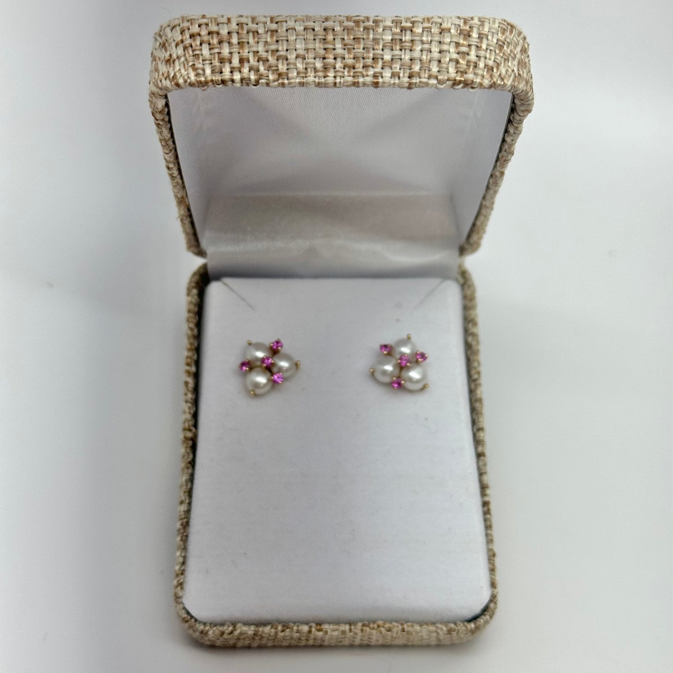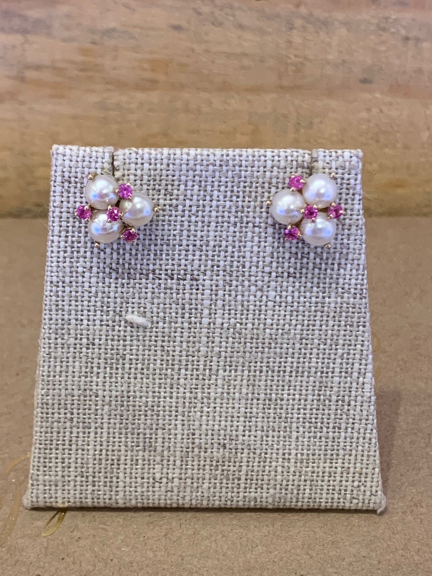 14K Gold posts with Pearls and Pink Sapphires.