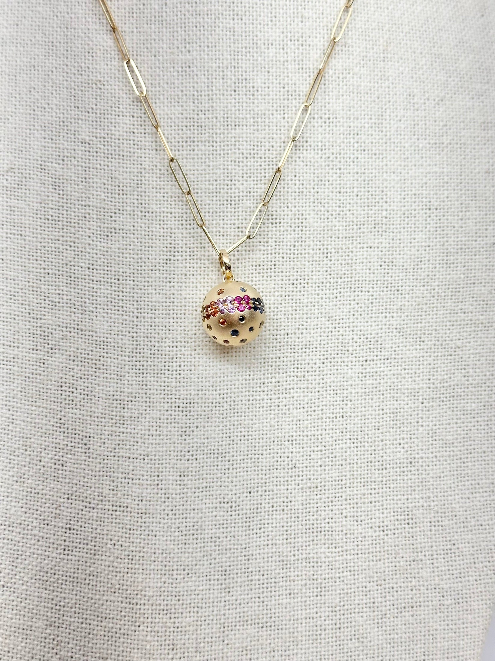 Gold Sphere with Semi-Precious Stone Pendant