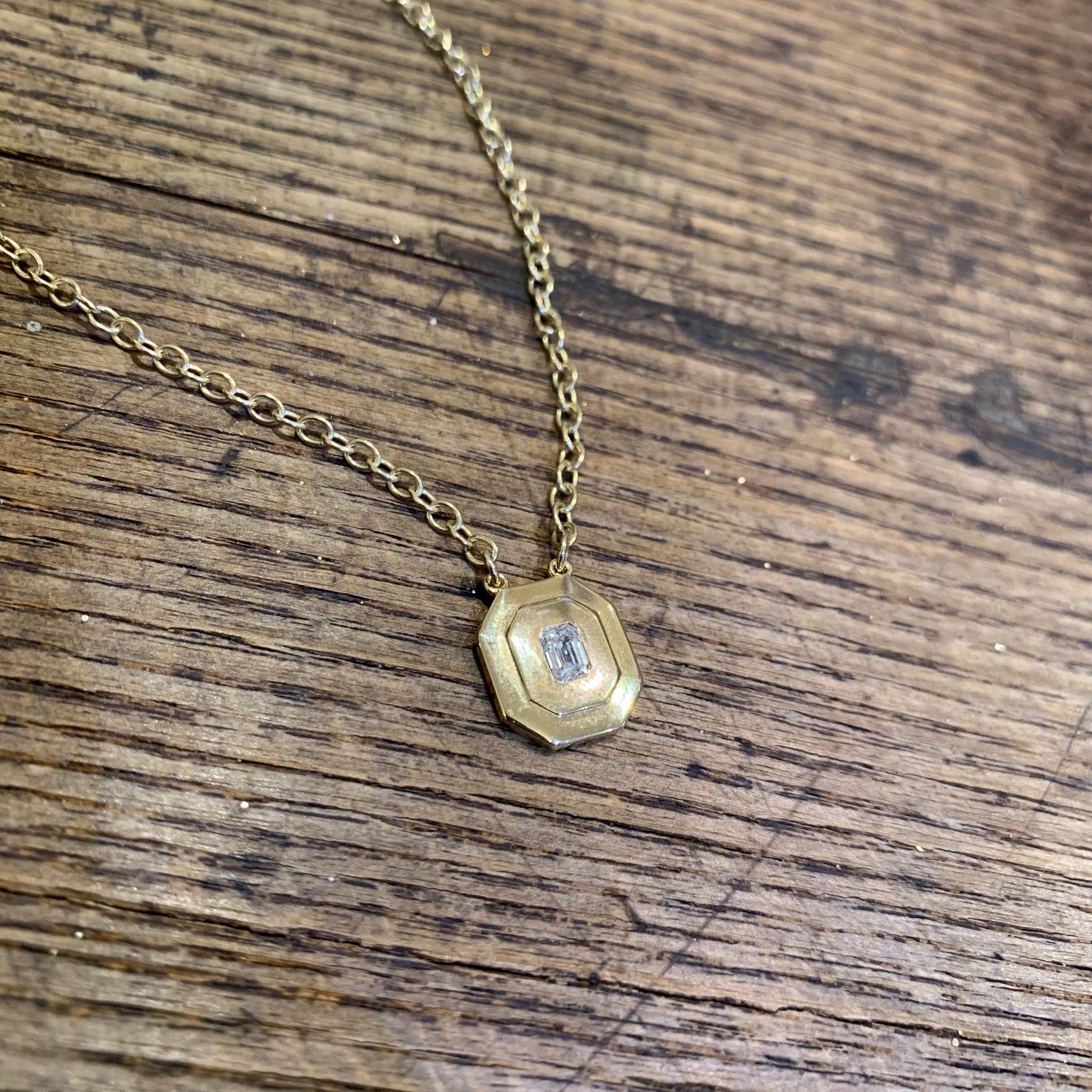 Beautiful Baguette Diamond set in 14K Gold on 14K Gold chain with extender chain to be worn at different lengths.