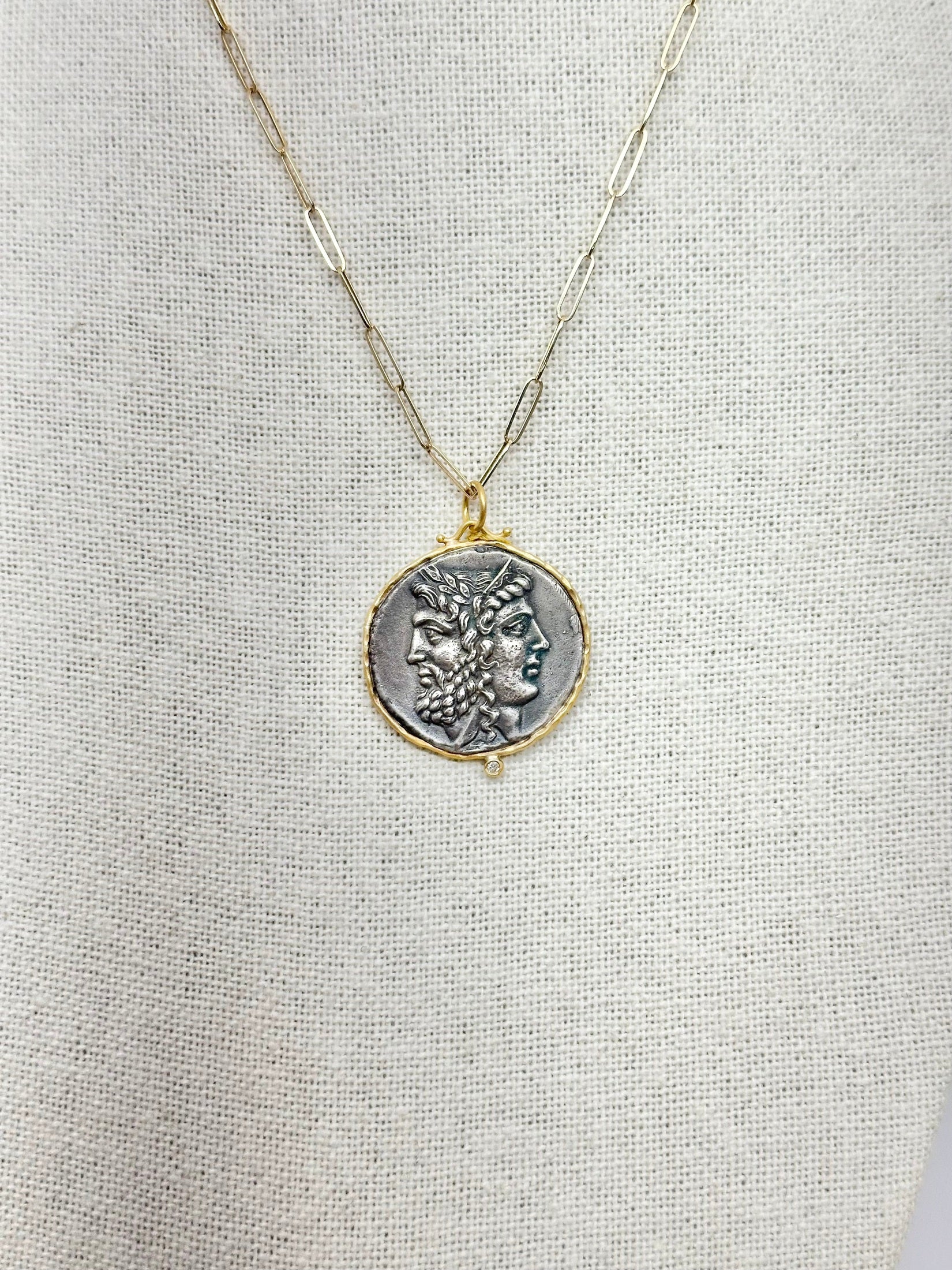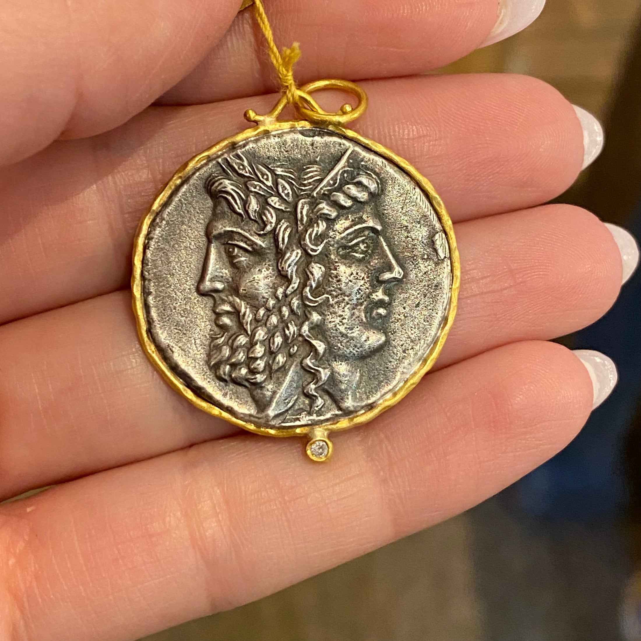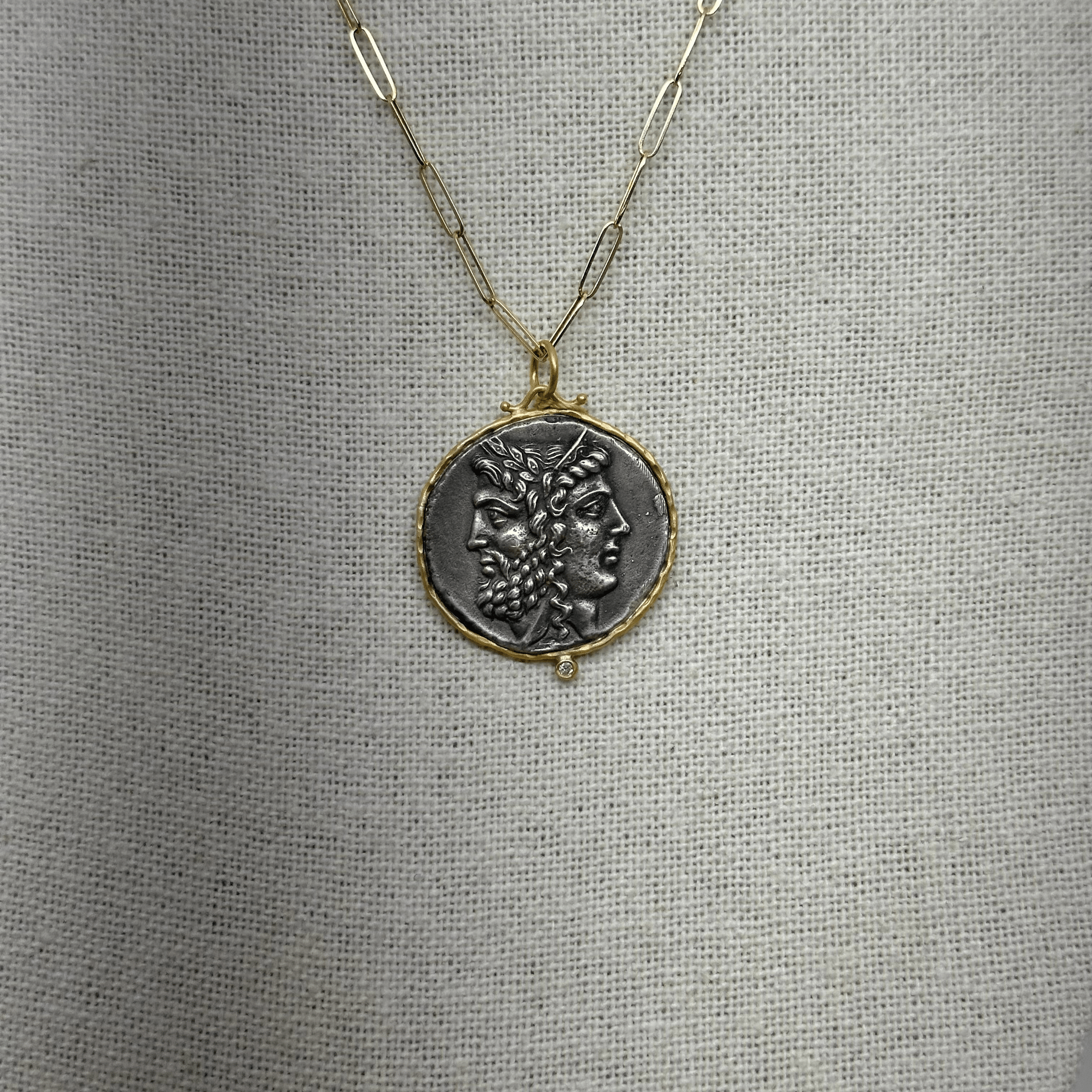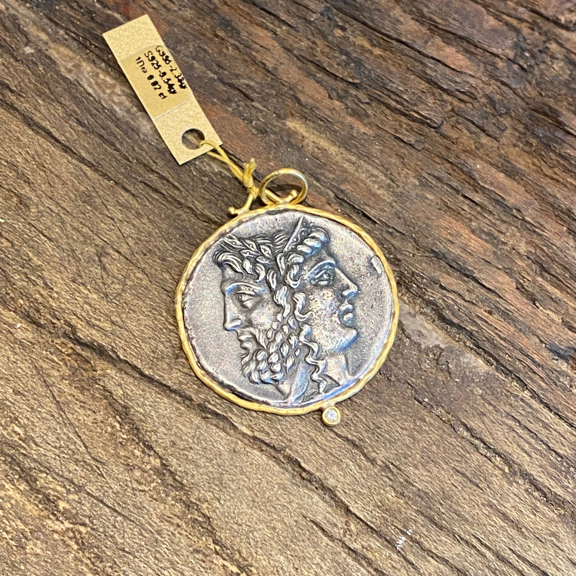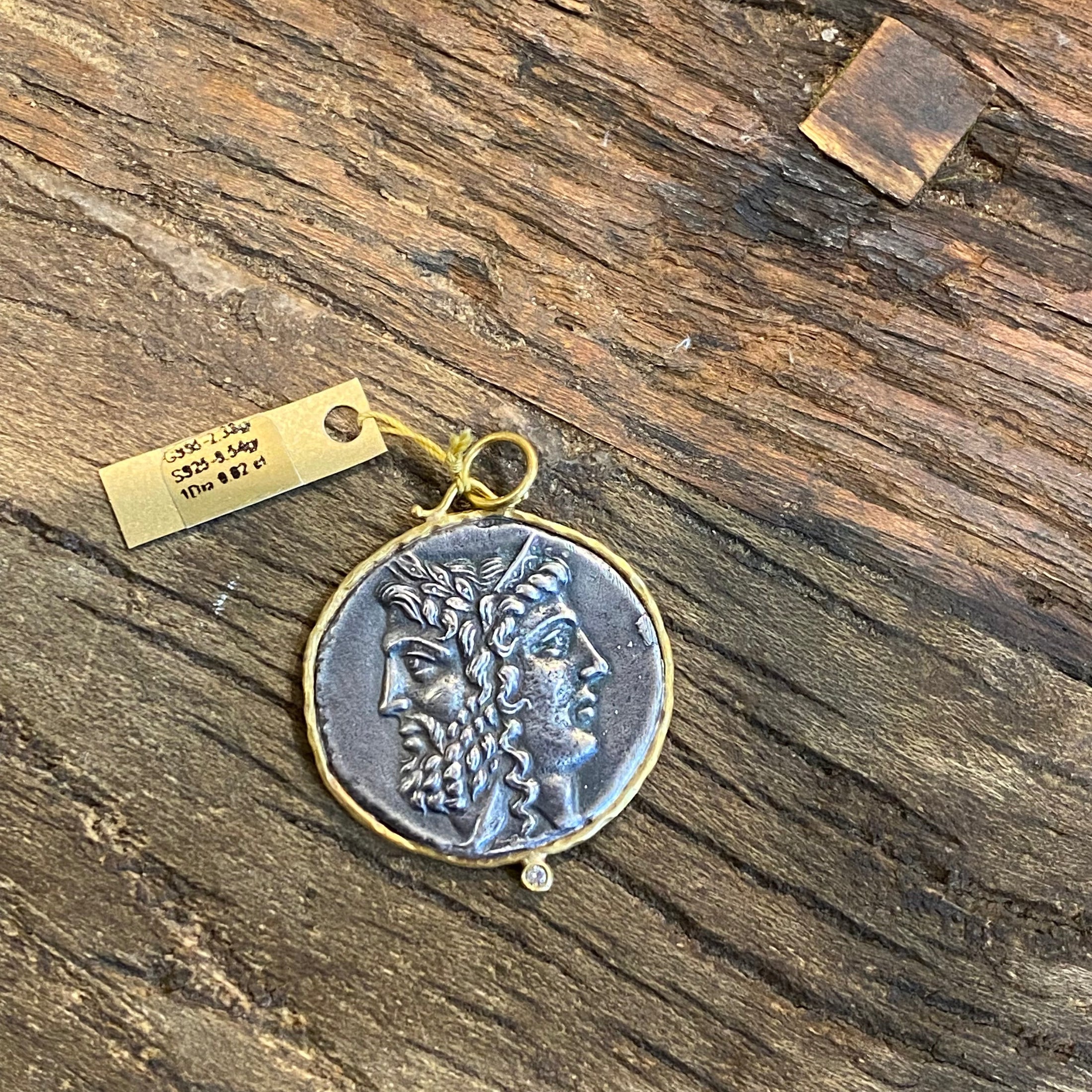 Janus & Janus - The End and The Beginning - 24K Gold Pendant w/ Diamond & oxidized Silver