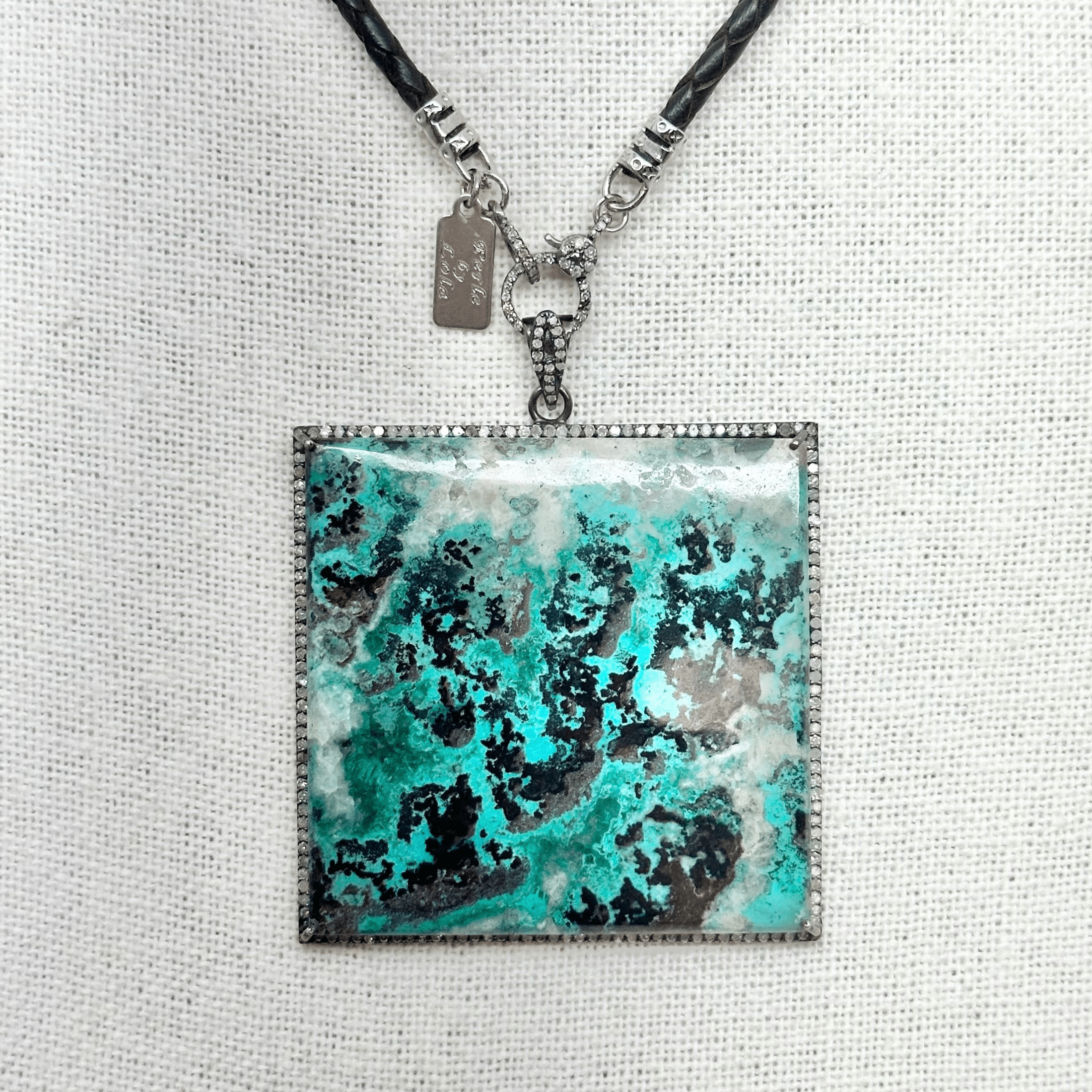 Large Turquoise Pendant w/ Silver Pave Diamond