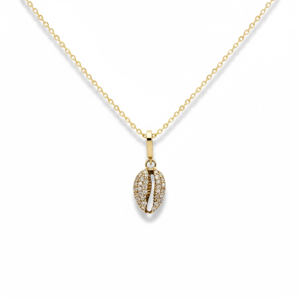 Gold Pave Diamond Puka Shell w/ Clasp