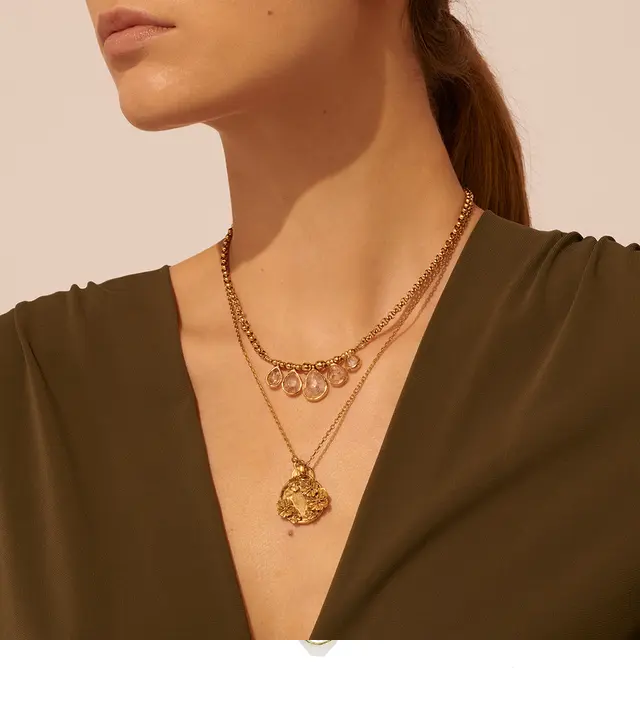 Mid-length necklace from the Cachemire Collection. Drop-cut jewellery with each stone transformed into a burst of light. Yellow gold finish.
