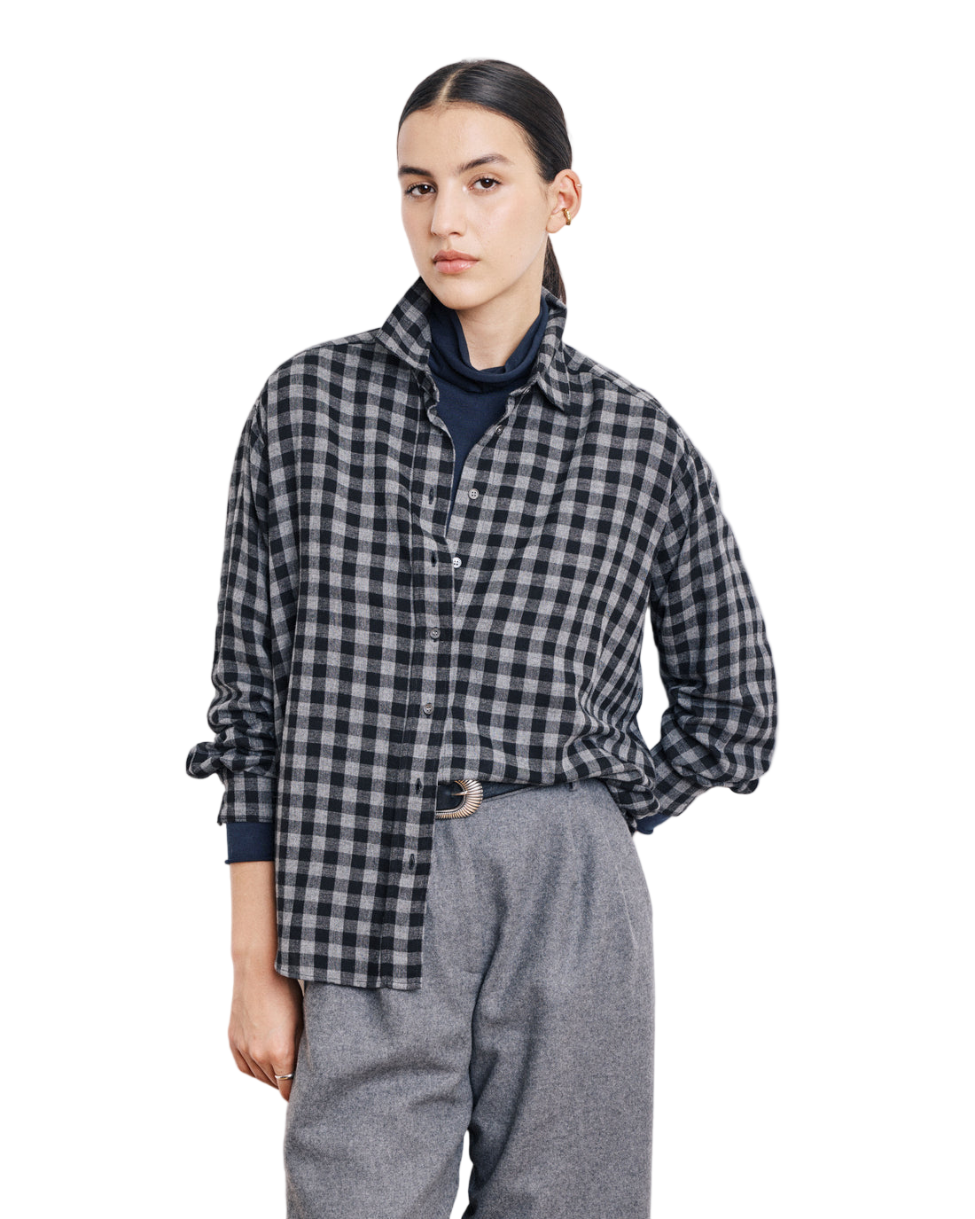 - Loose-fitting shirt in viscose and wool in Plaid gingham