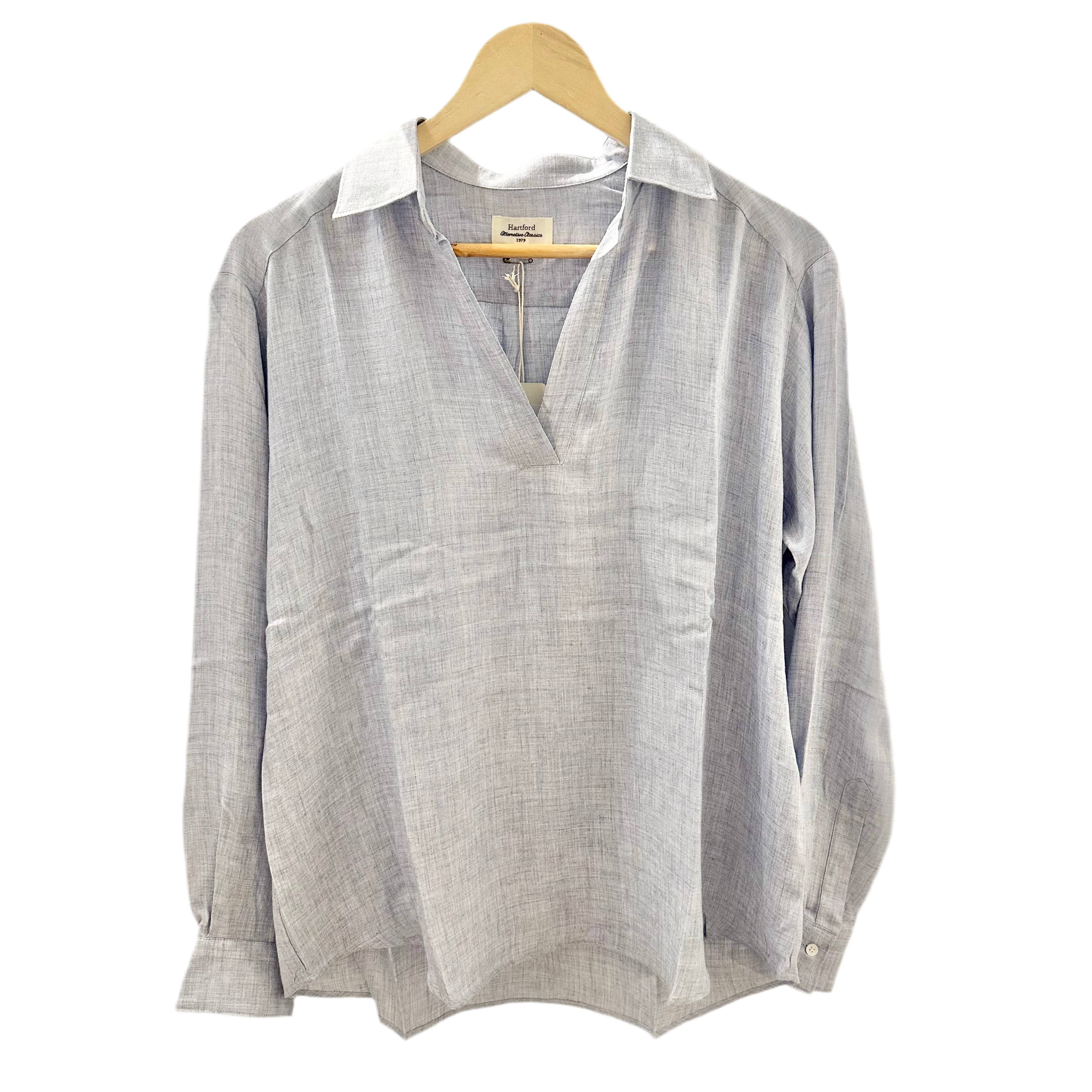 With its sleek lines and fluid fall, the CHORUS women's blouse is one of those discreet pieces that make all the difference. Conceived as an alternative to a shirt, it dresses up without overdoing it, and naturally finds its place in an everyday wardrobe. The right choice for those seeking to combine sobriety and style.