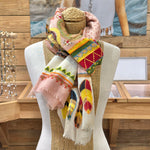 This product has been designed following traditional Indian dyeing and printing methods. Variations in color and print are not defects, but rather elements that add to the natural beauty and uniqueness of each scarf.