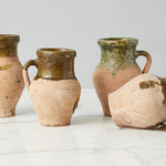 Collected from across Eastern Europe, specifically Greece, Bulgaria, and Turkey, these terra-cotta jugs come in a variety of gorgeous green tones and date back to the 1900s. These vessels come in several shapes and sizes and have a wonderful contrast glazed and unglazed clay. While bearing marks age, each piece was hand-selected by our Creative Director and remains faithful to our high-quality standards.