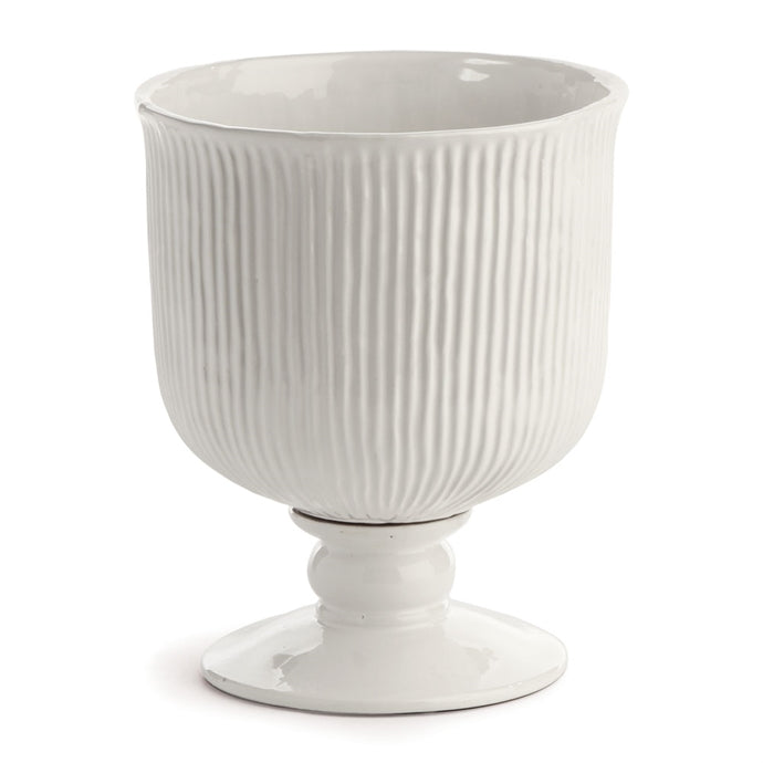 The traditional shape and ribbed design are traditional in feel. Drop in your favorite floral, and you've got a beautiful centerpiece.