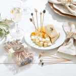 This set of 40 Sea Fare wooden food picks are perfect for serving appetizers or cocktail garnishes. Each pick features a charming seashell accent that is applied by hand. The picks measure 6" long and the set is packed in a paper wrapped container, making them a great gift!