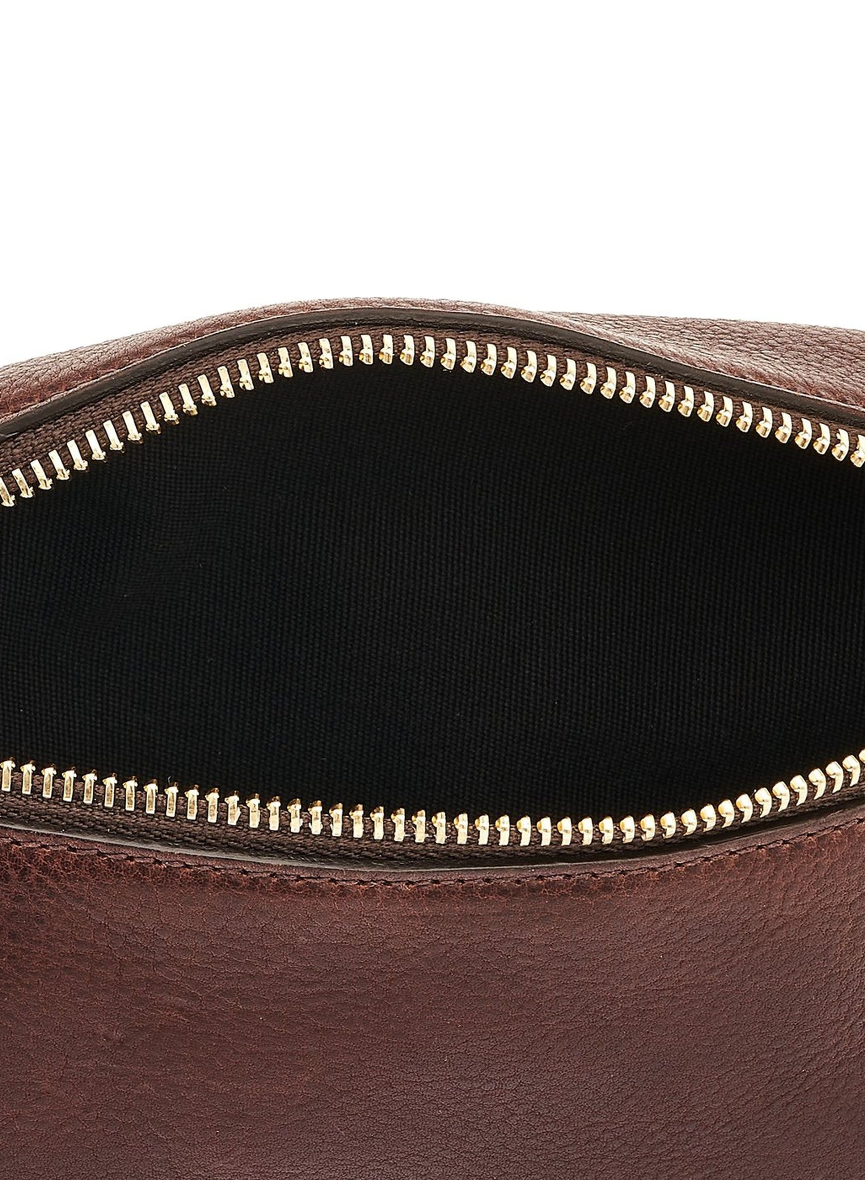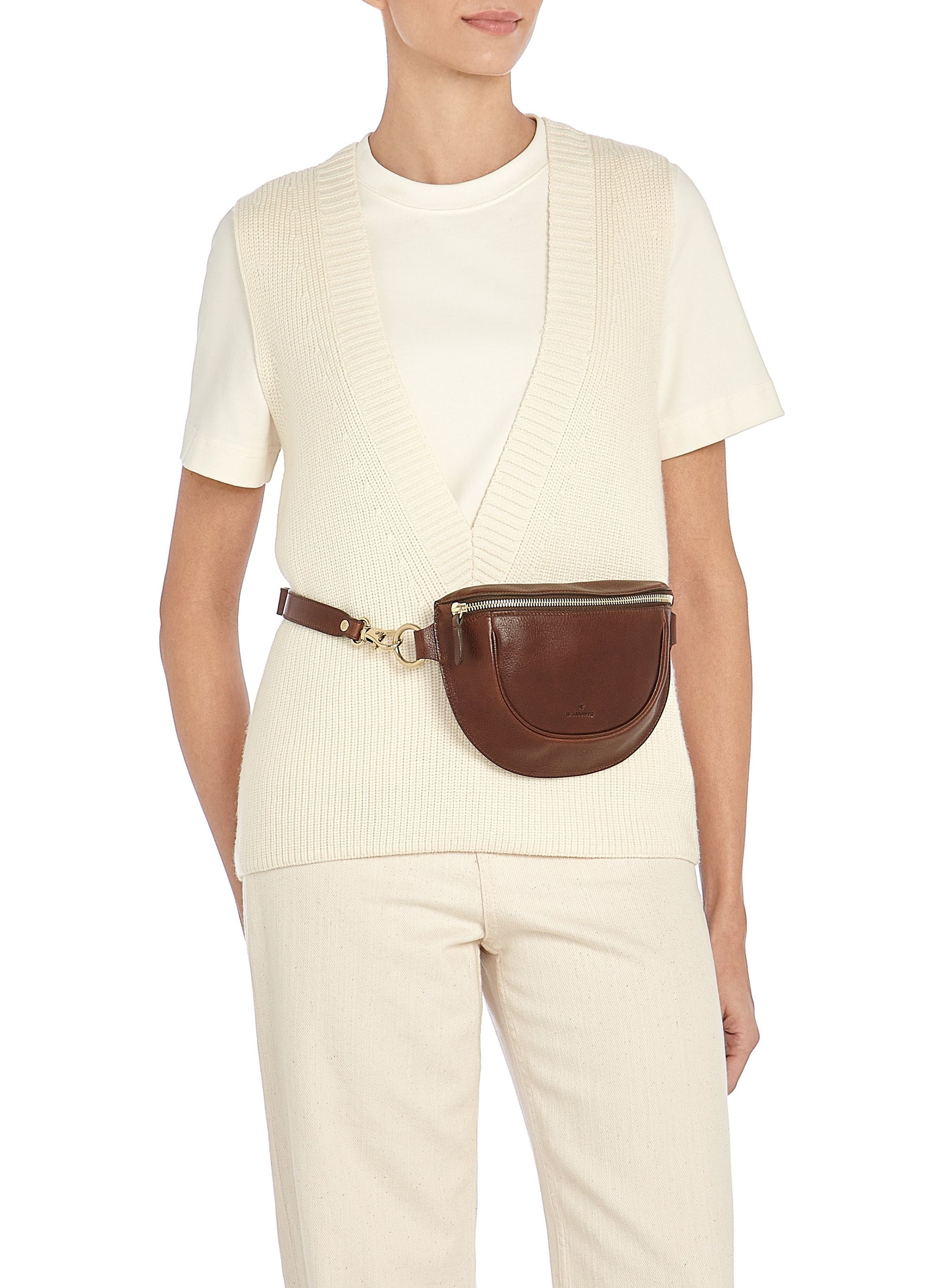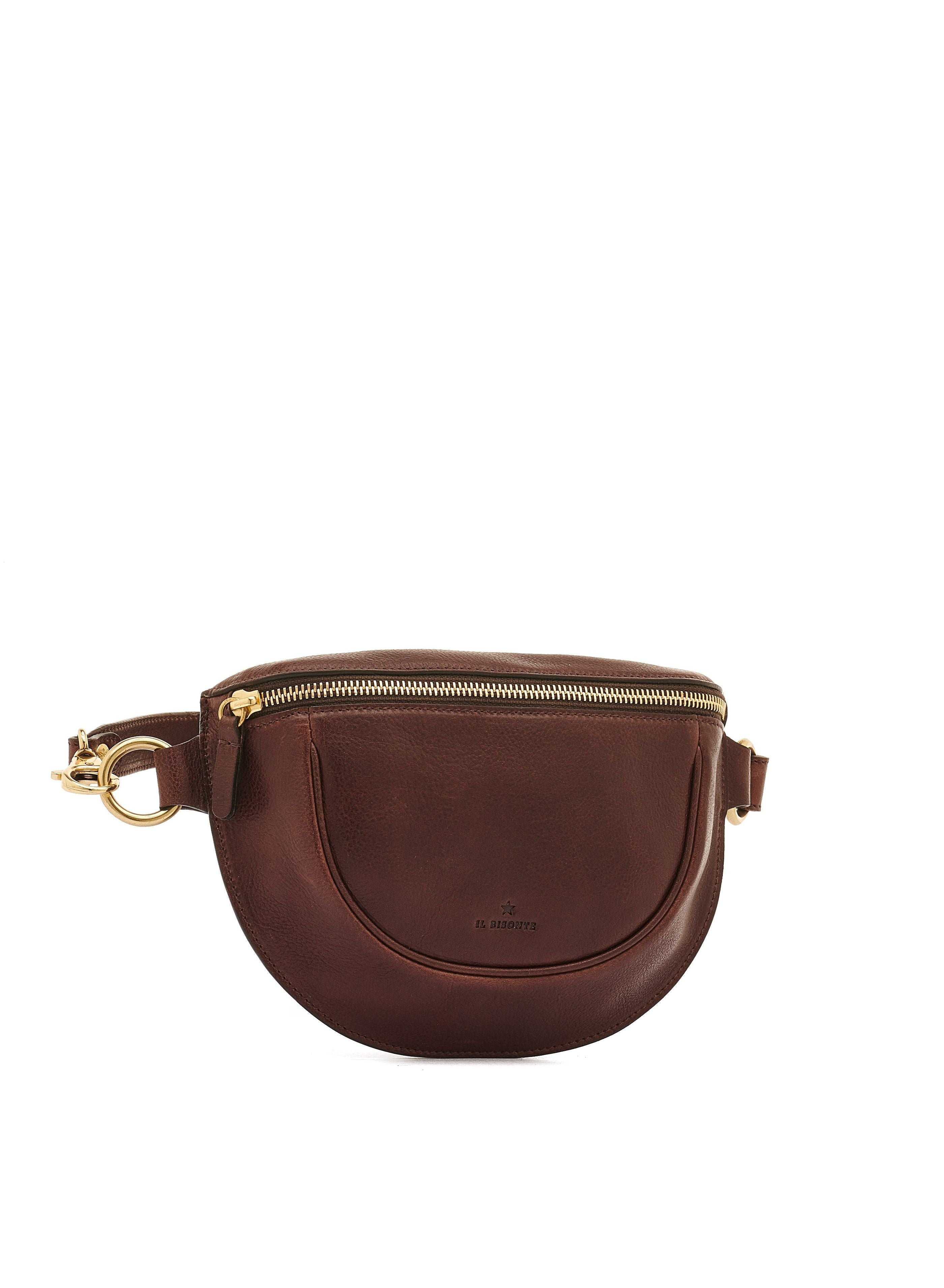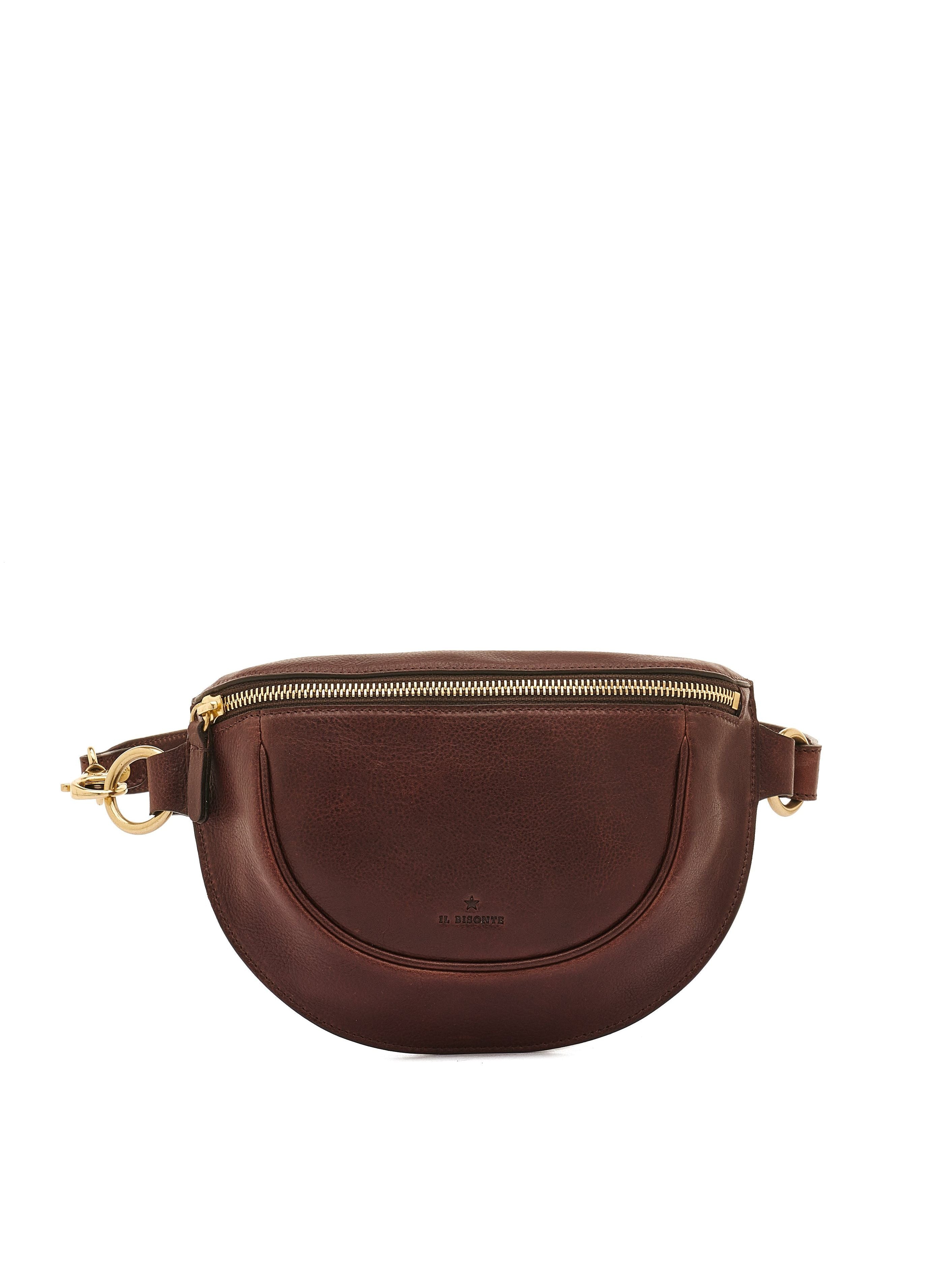 Women's bum bag in vegetable tanned leather. It can also be worn crossdody by adjusting the shoulder strap with a cufflink. Zip opening with leather zip puller held by a hand-sewn t-shirt. Interior lined in cotton canvas. 100% made in Italy.