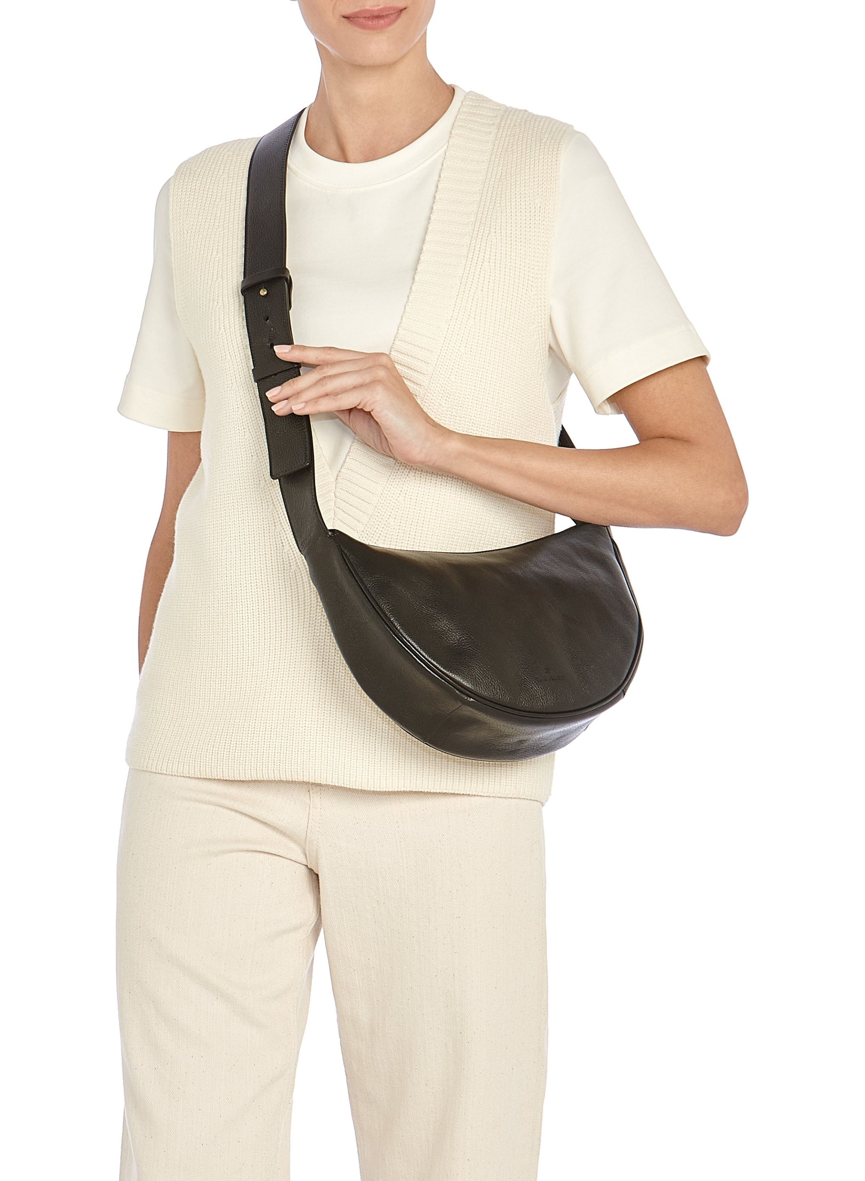 Vegetable tanned leather hobo bag, can be worn both crossbody and shoulder. The particularly comfortable shoulder strap follows the profile of the bag and can be adjusted with a cufflink. Zip closure with leather zip puller held in place by hand-sewn t-shirts. Interior lined in cotton canvas, with a zip pocket. 100% made in Italy.