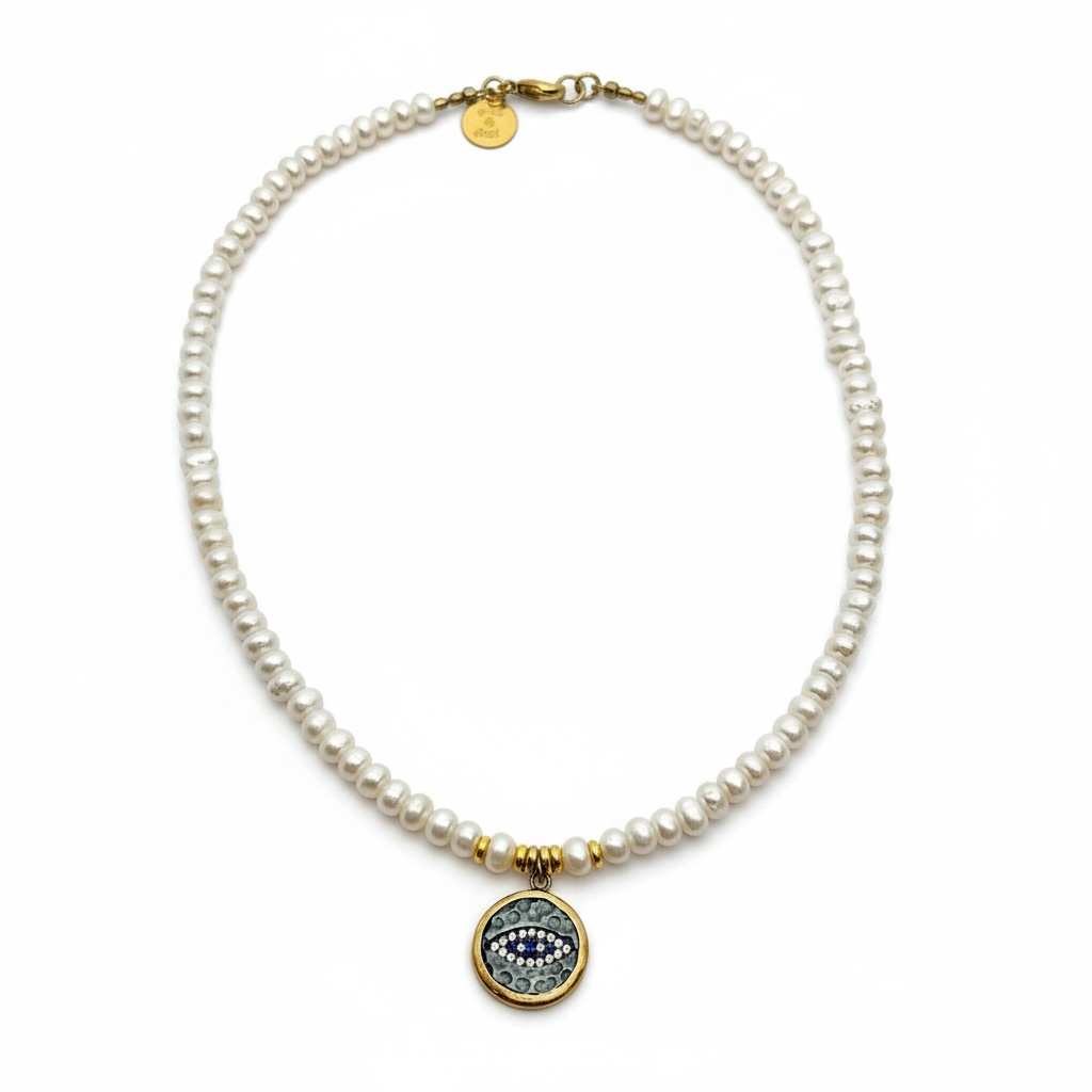 Small Freshwater Pearls w/ Evil Eye Pendant Choker