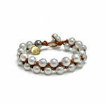 Elevate your everyday style with this refined bracelet featuring lustrous Akoya pearls accented by a single Tahitian pearl, all intricately woven into tan premium leather using traditional macramé techniques. Versatile and timeless, this piece seamlessly complements any wardrobe while maintaining an understated elegance that transcends seasons and occasions.