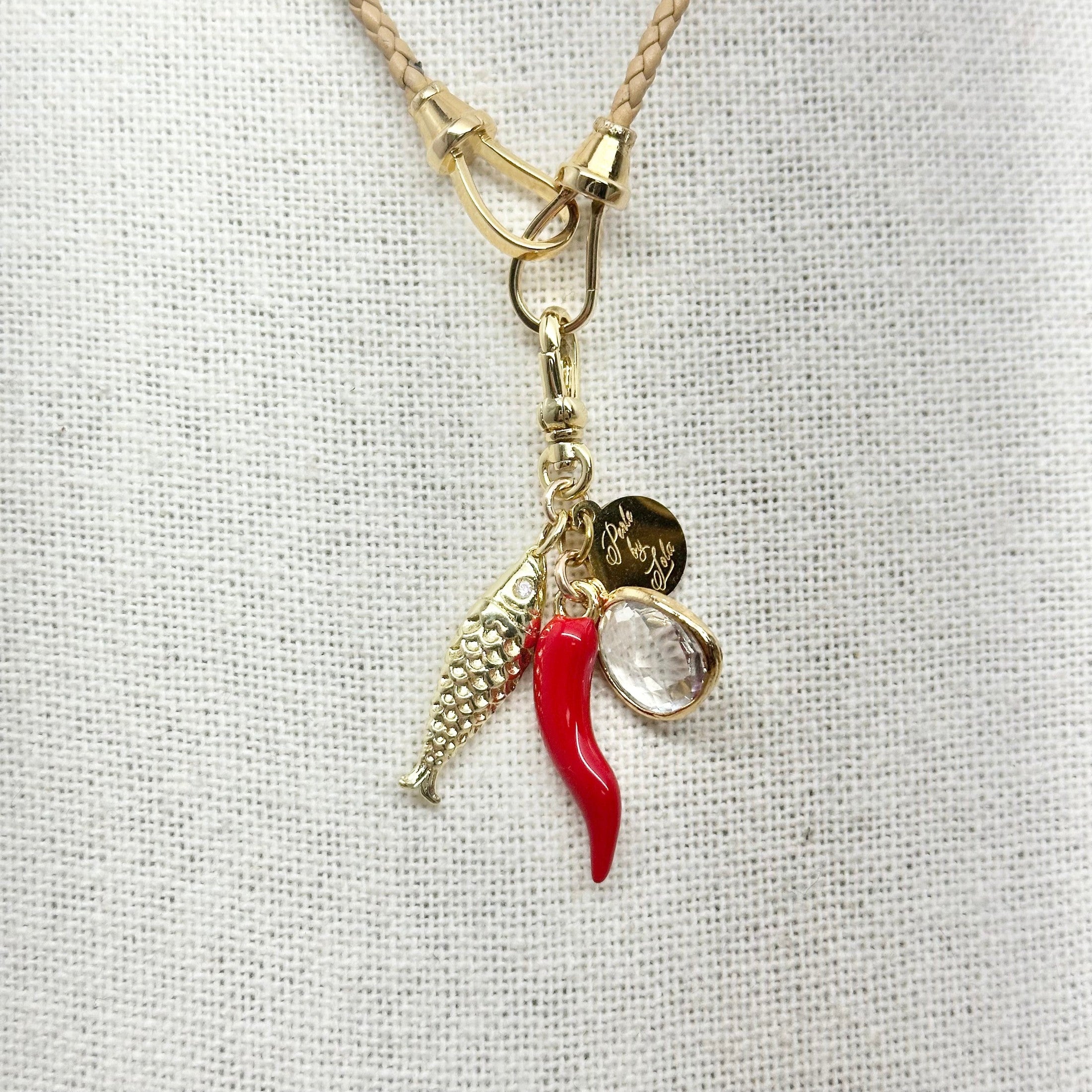 Fish, Chili Pepper, and Semi-Precious Stone Charm Cluster