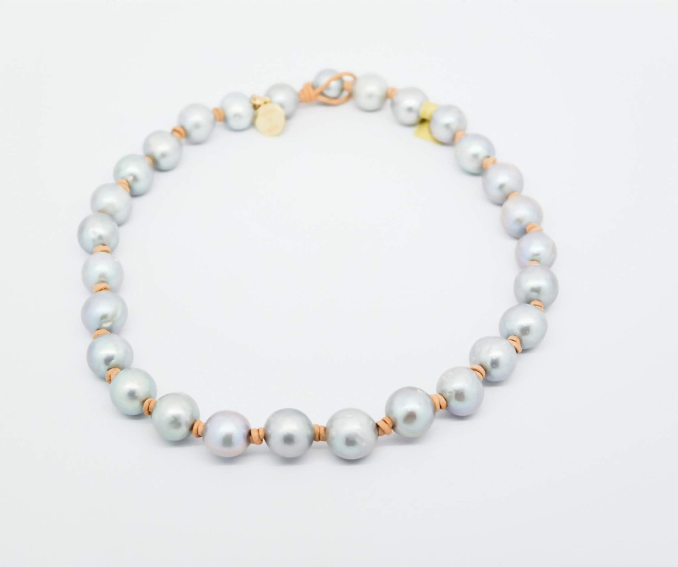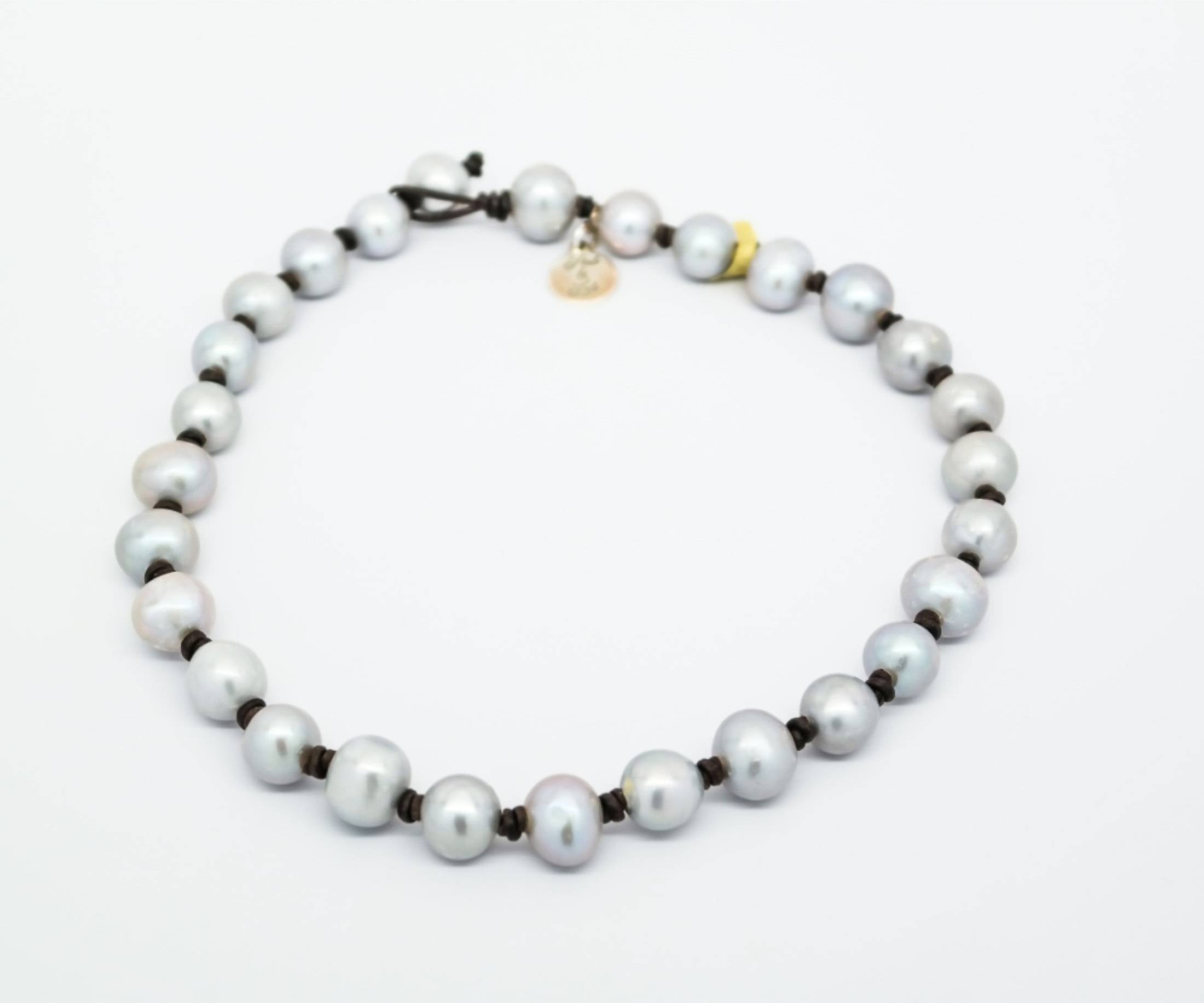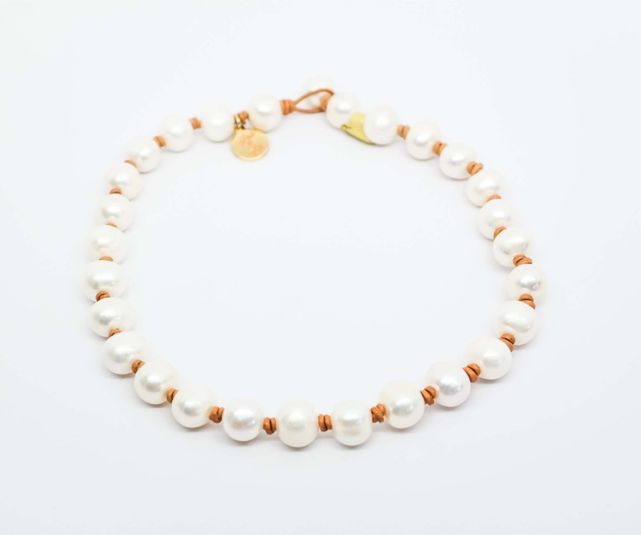 Elevate your everyday style with this refined 17-inch choker featuring lustrous large round Edison freshwater pearls. Select between rich dark brown or warm tan leather stringing to complement your personal aesthetic. Versatile enough to wear solo as a statement piece or layered with other necklaces for added dimension and elegance.