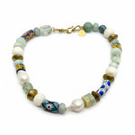 Semi-Precious Stone and Freshwater Pearl Necklace | E | 16"