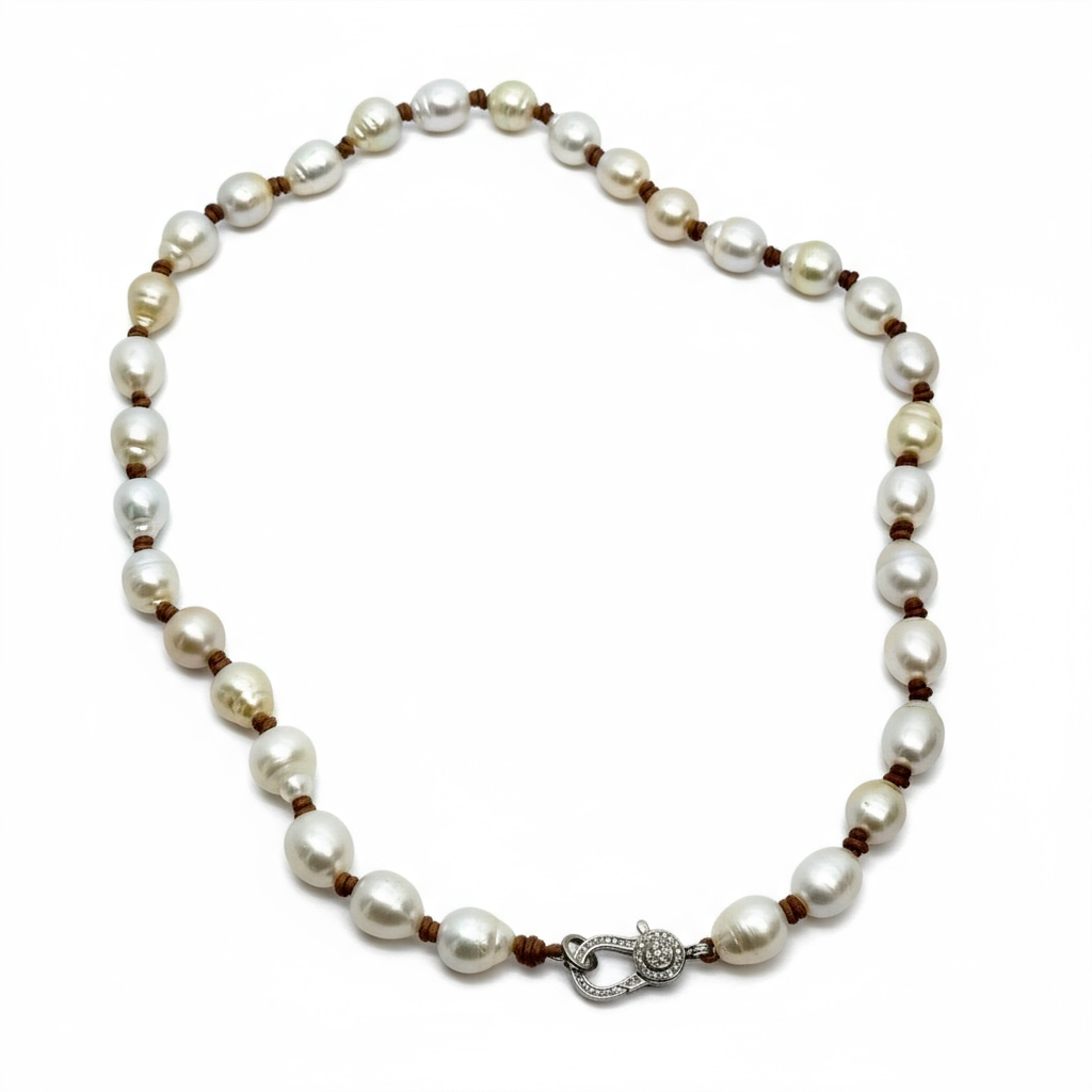 South Sea Pearl Necklace with Silver Pave Diamond Clasp | 22”