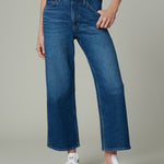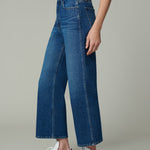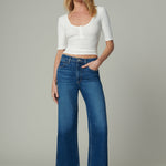 Slim fit through the waist and hips with a high rise and a minimal wide leg that hits above the ankle.