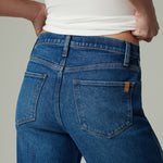 Mid-weight indigo denim with minimal stretch for added comfort.