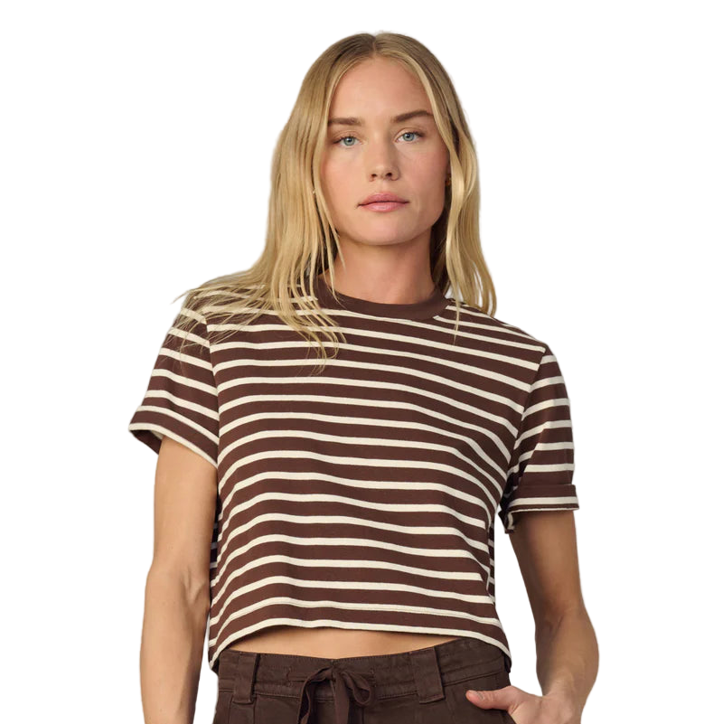 JJ - The Boxy Tee | Brown/Sand Stripe