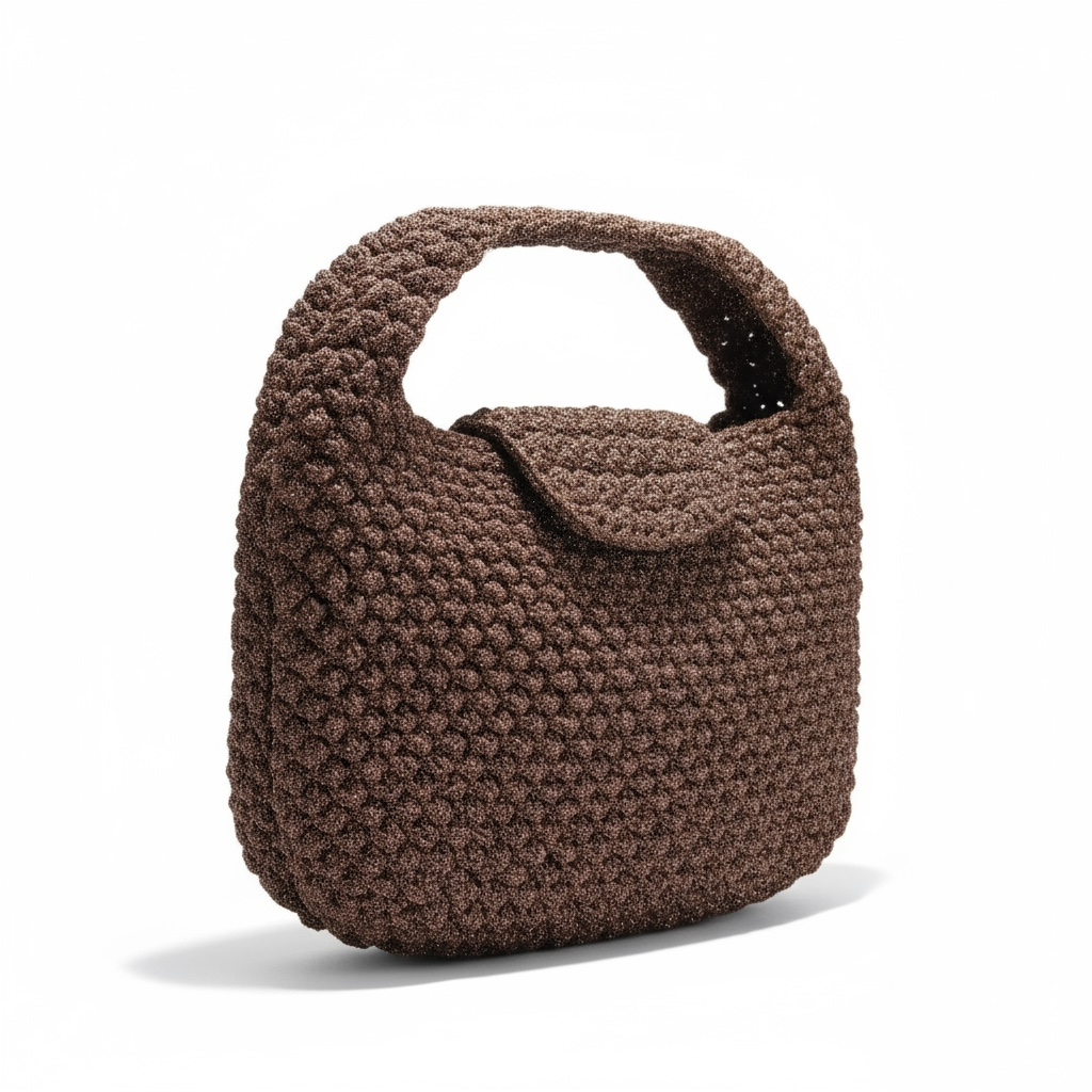 Large flap bag. Hobo. Crocheted handles. Only lurex. Magnetic closure. No lining.
