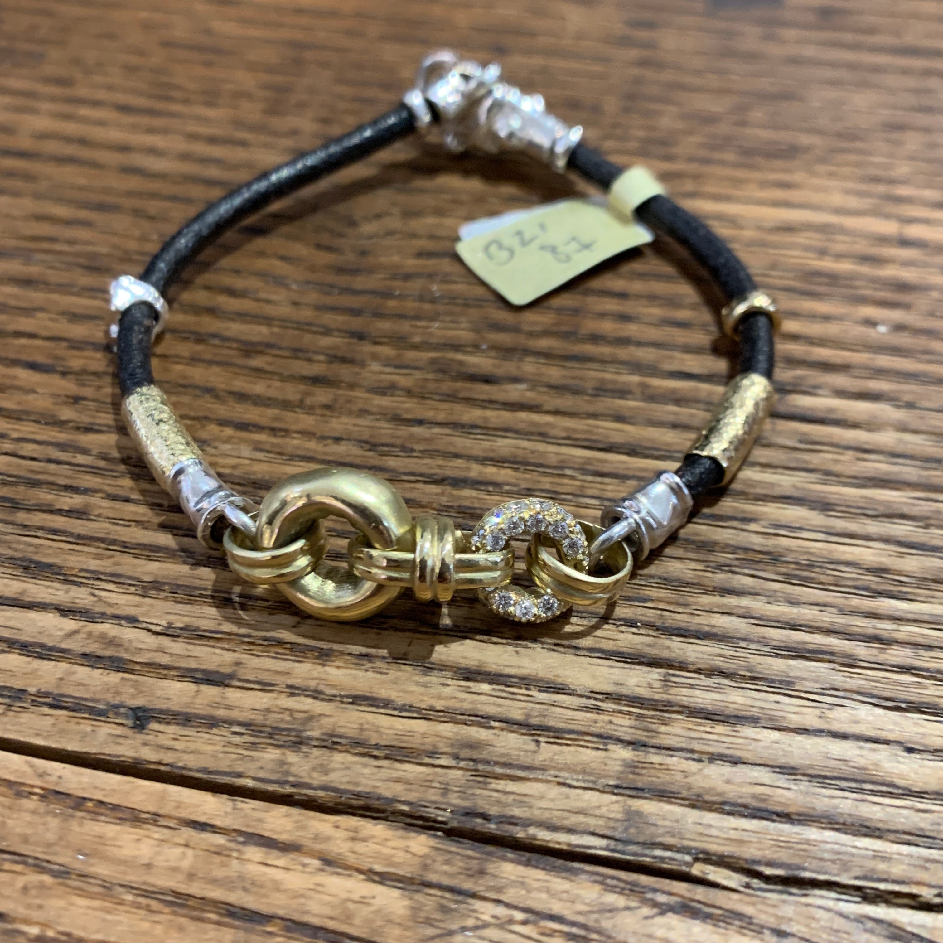 Stunning bracelet made with 18K Gold, Sterling Silver and Diamonds. Each piece is one of a kind and has been worked by hand.