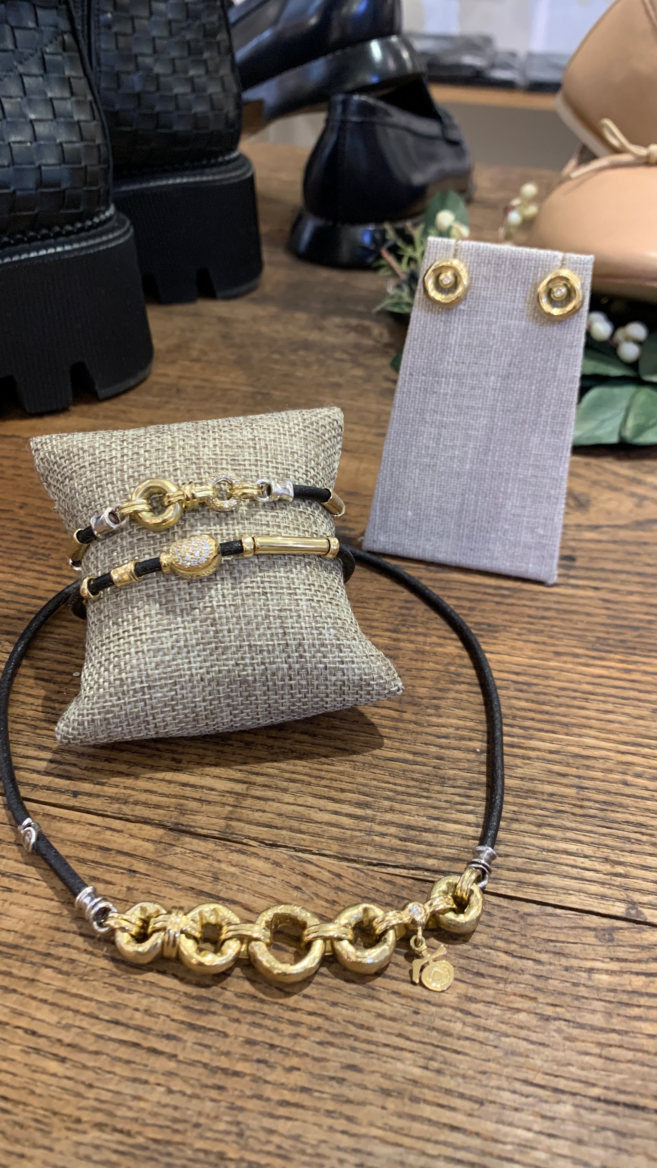 Stunning choker made with 18K Gold, Diamonds & Sterling Silver Clasp. Each piece is one of a kind and has been worked by hand.