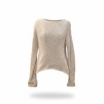 Airy loose knit crewneck sweater. Voluminous texture and feather lightweight yarn.