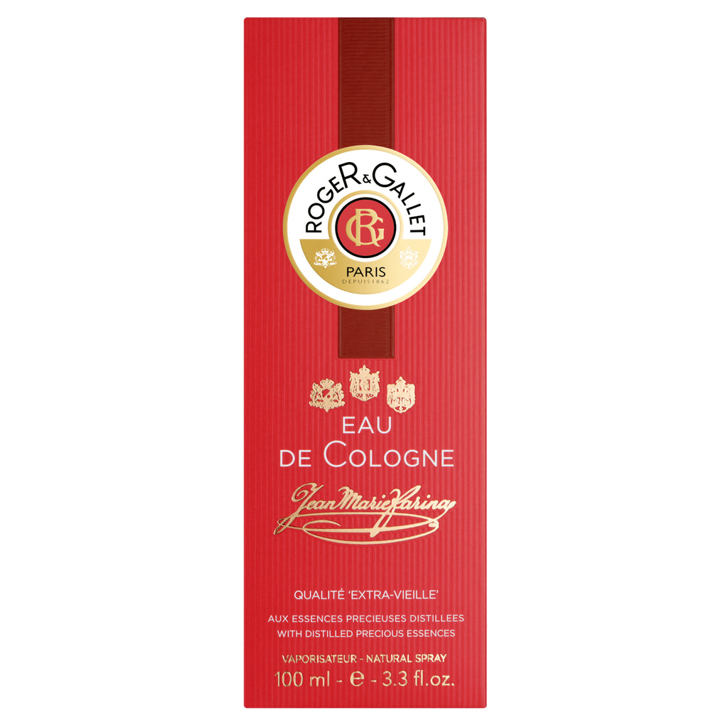 World wide reference for Eau de Cologne, the authentic Jean- Marie Farina Eau de Cologne by Roger & Gallet is a perfect blend of top notes from citrus fruit (bergamot and lemon), delicately underscored by an orange (neroli and petitgrain) and rustic (rosemary) heart, complemented by base notes of cedarwood, sandalwood and myrtle (cedar, vetiver, musk and white amber).