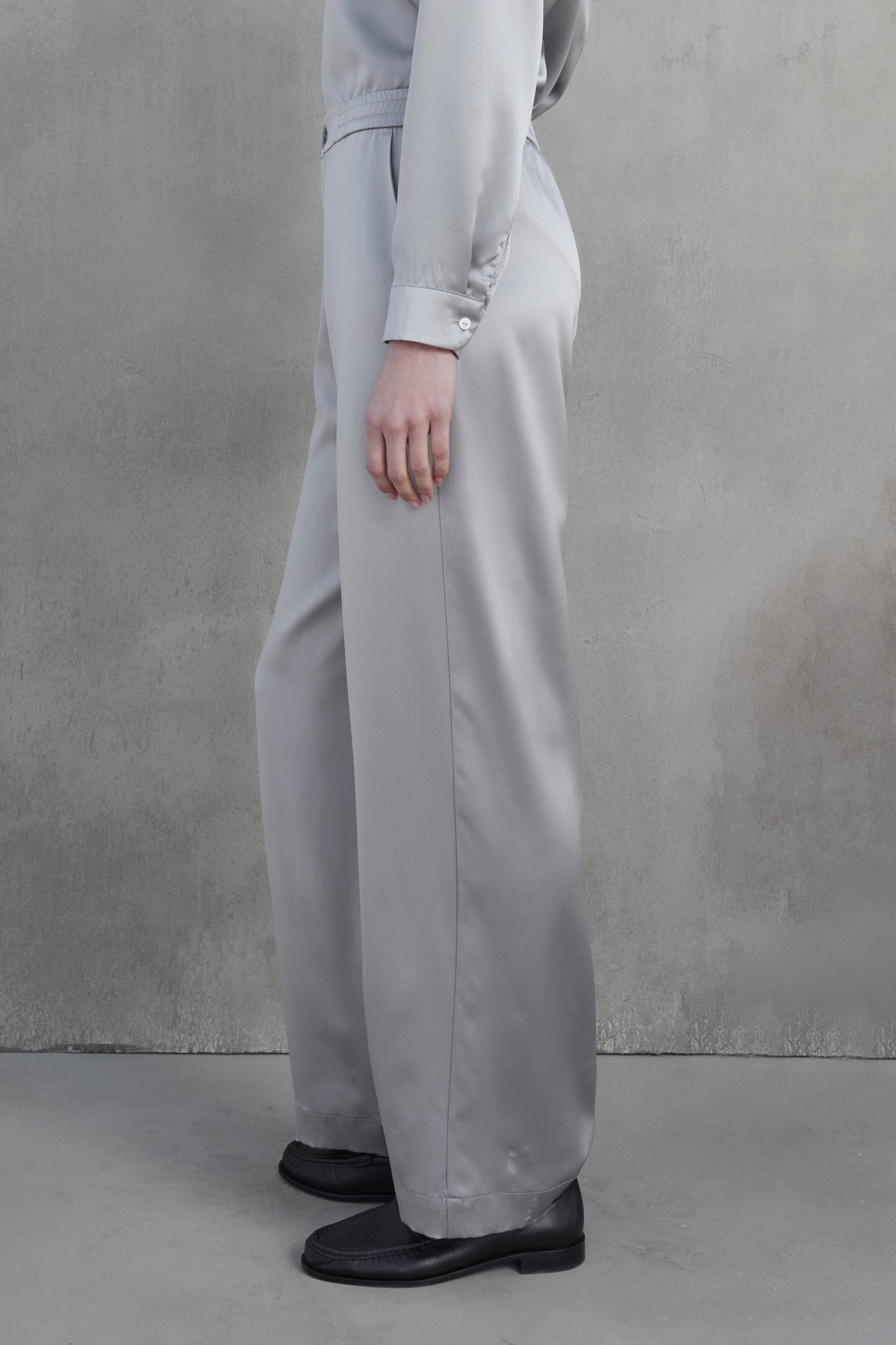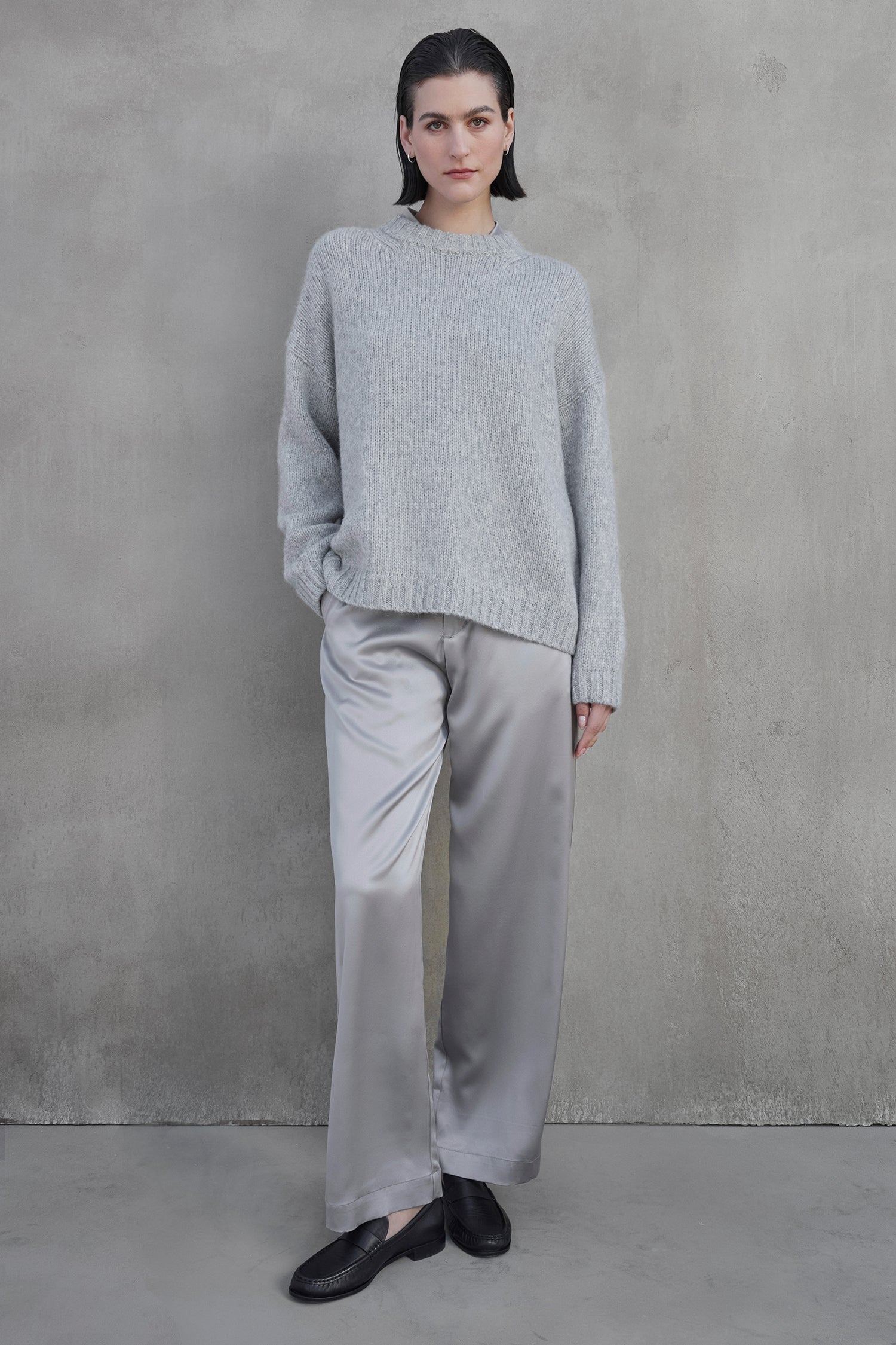 Silk Charmeuse pant with elastic waistband, fly, and pockets. Complete the look with coordinating Cambria Sweater.